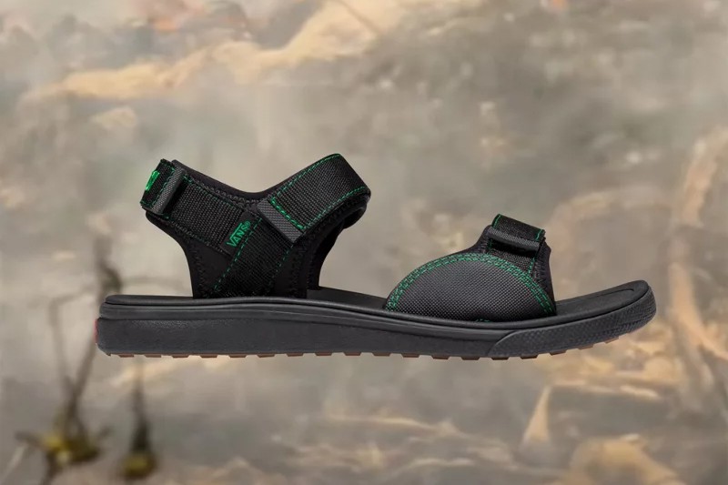 Finally, the Tri-Lock Sandal is done up in simple black with green contrast stitching. Unlike the Sk8-Hi and Old Skool which split “Sci-Fi Fantasy” between the left and right heels, the Tri-Lock puts the full phrase on both heels. Black midsoles with a red Vans heel badge complete the footwear offerings. There’s also an accompanying jersey that reads “Generic Technology” in Chinese across the chest.