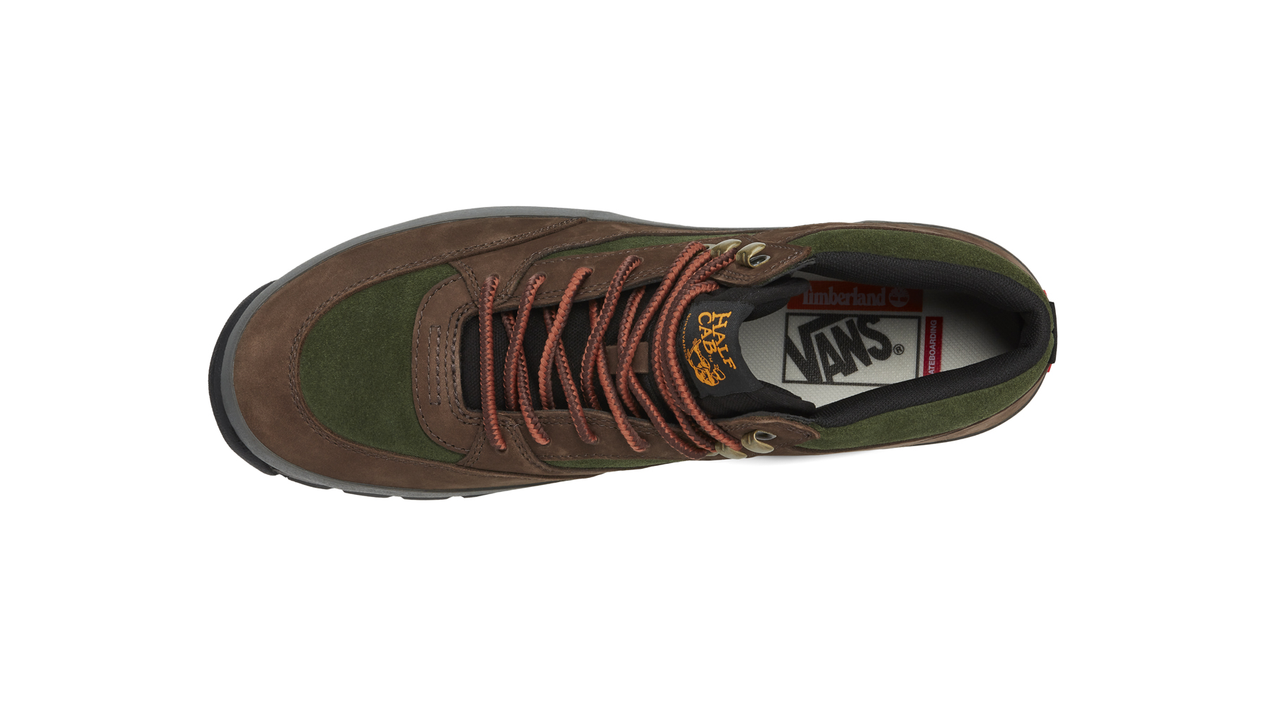 Vans’ iconic Half Cab, a storied skate shoe that was first released in 1992, is nearing the culmination of its year-long 30th-anniversary celebration. Over the past 12 months, a set of releases that encapsulates the Half Cab’s wide-reaching cultural influence have hit shelves, so for the grand finale, it’s only right for the Half Cab to head down a bold new trail and into the world of Timberland. Vans and Timberland have come together for an entirely new hybrid silhouette dubbed the Vans Skateboarding x Timberland Half Cab Hiker, a design that’s half skate shoe, half hiking boot and entirely unique.