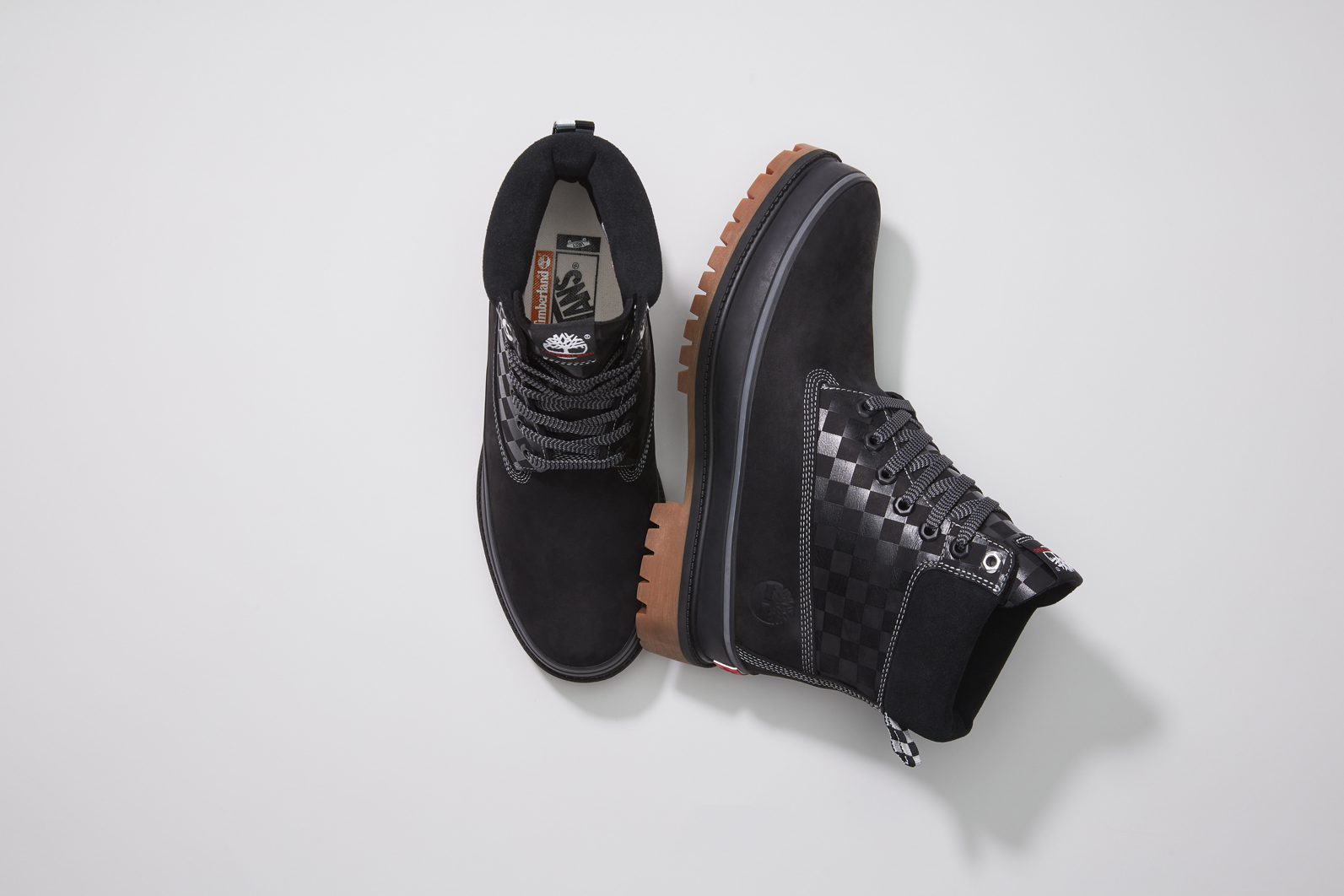 Accompanying the duo of Half Cab Hikers is an entirely new take on Timberland’s paradigmatic Premium 6-Inch Waterproof Boots. First introduced in 1973, the 6-Inch Boot provides an instantly recognizable style that’s been revamped by the Vans team for a combination of streetwear, workwear, and skate aesthetics. The Vans Skateboarding x Timberland® 6-Inch Boot comes in Black.
