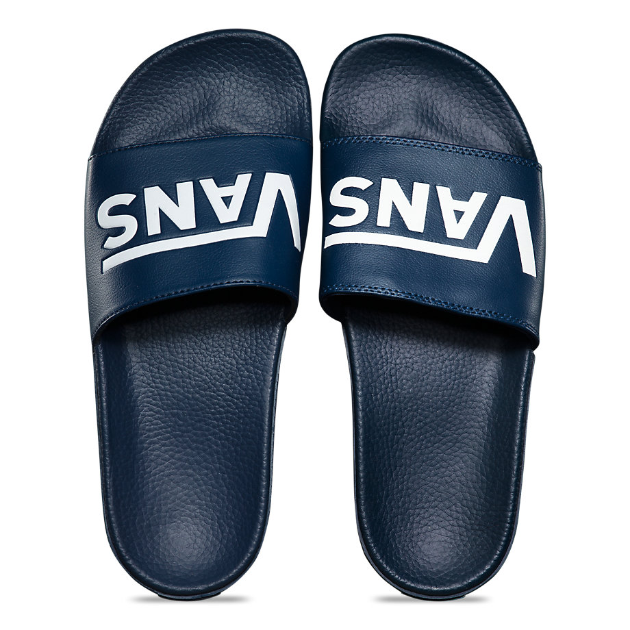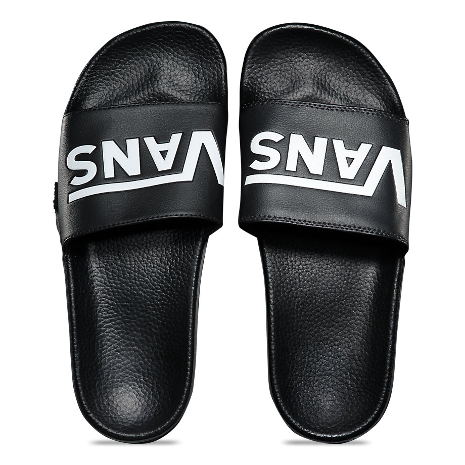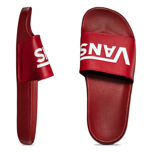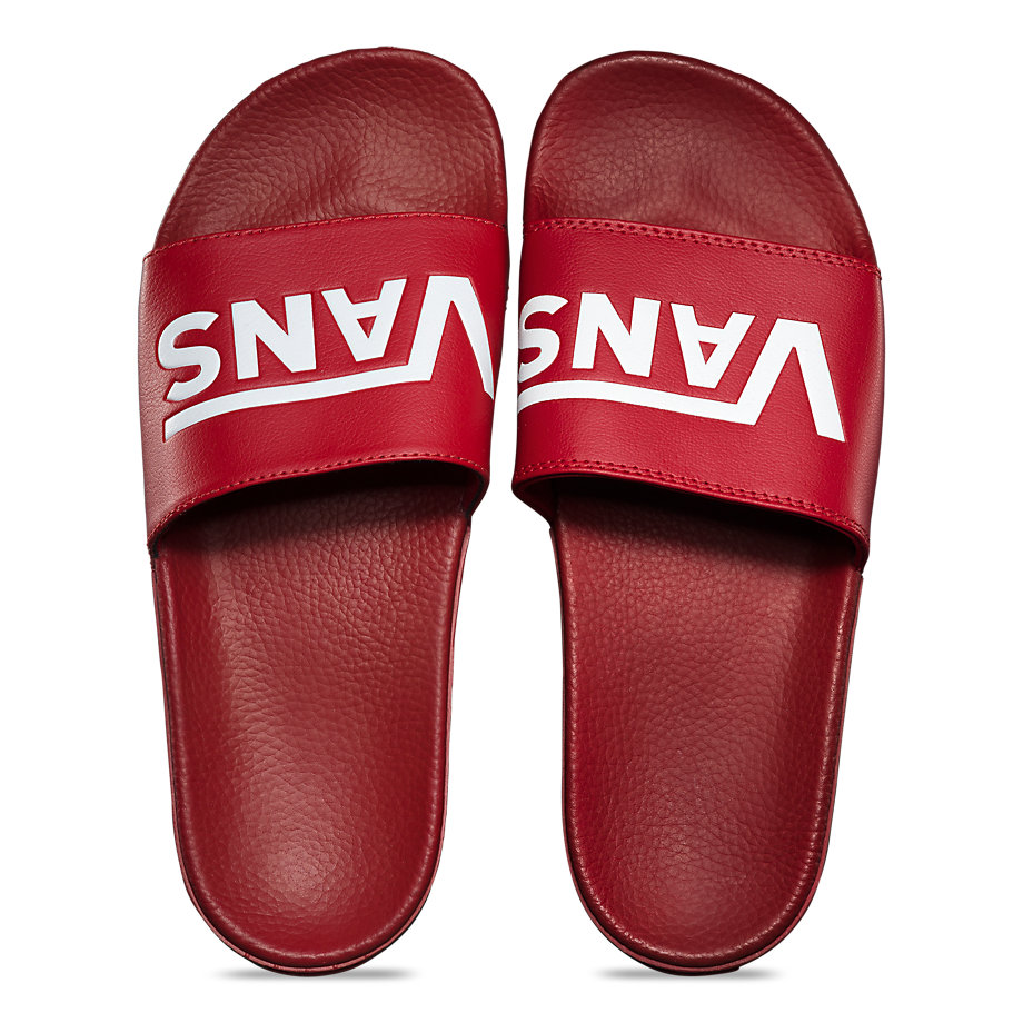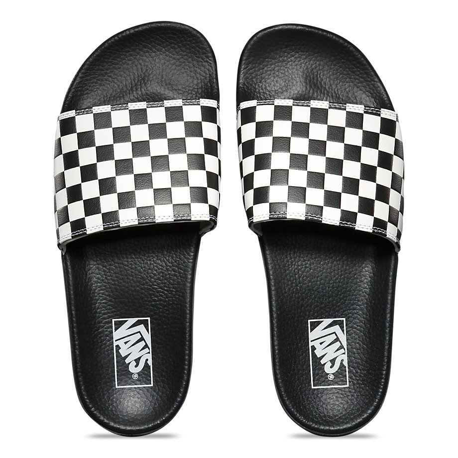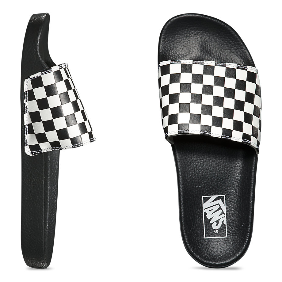 Check out these dope Vans slides that just released. The shape is the same as your familiar Adidas Adilette, or every other similarly constructed slide out there, and for good reason. The fit and comfort is unmatched. Vans adds their own style to it, with a black and white checkerboard leather strap, or a simple Vans classic logo in white, on top of a black, red, or navy leather strap, sitting on top of a color-matched ultra-durable, lightweight PU outsole. Each pair is gonna run you $30, so decide which ones are best for you.