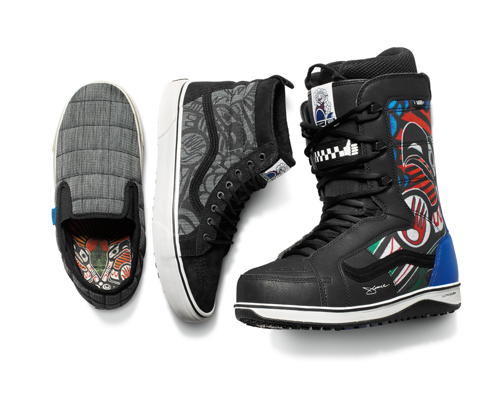 Vans expands Jamie Lynn’s signature footprint further to include a SK8-Hi MTE, showcasing his unique artwork on the sidewall, in addition to a Vans Slip-Er to provide the full off-mountain kit.