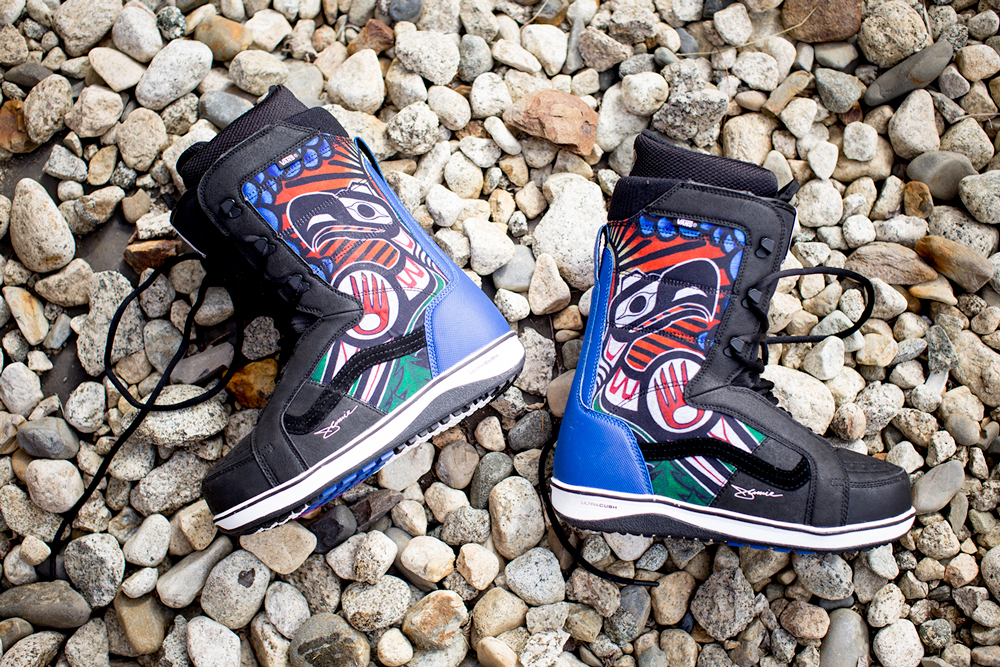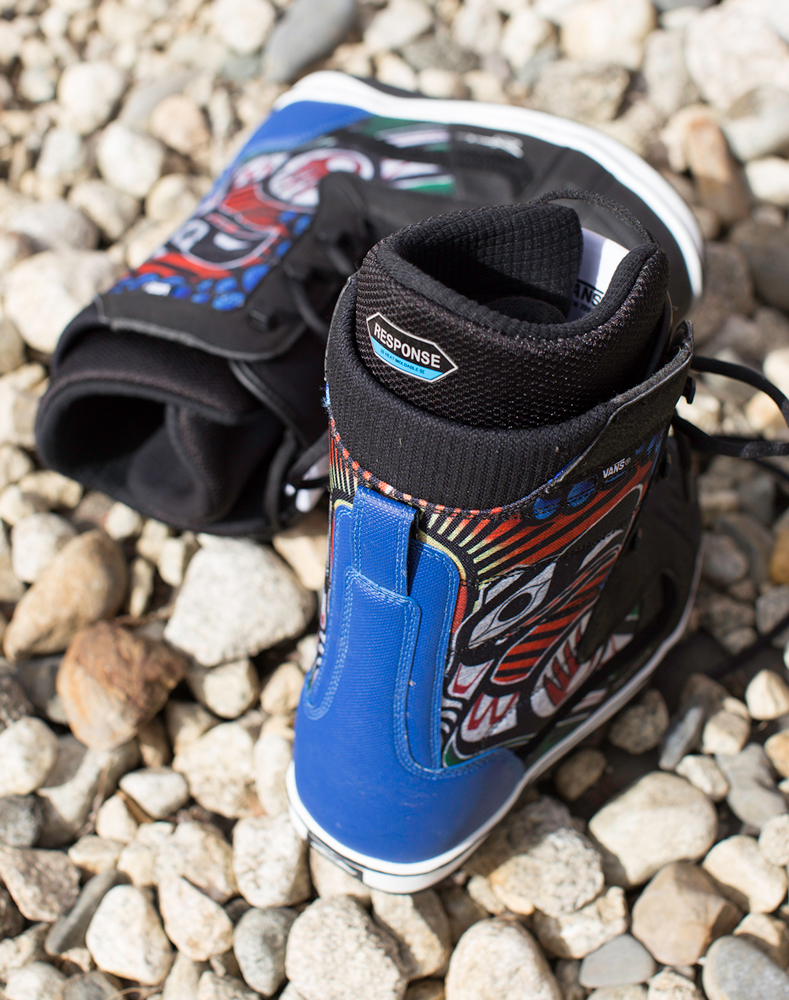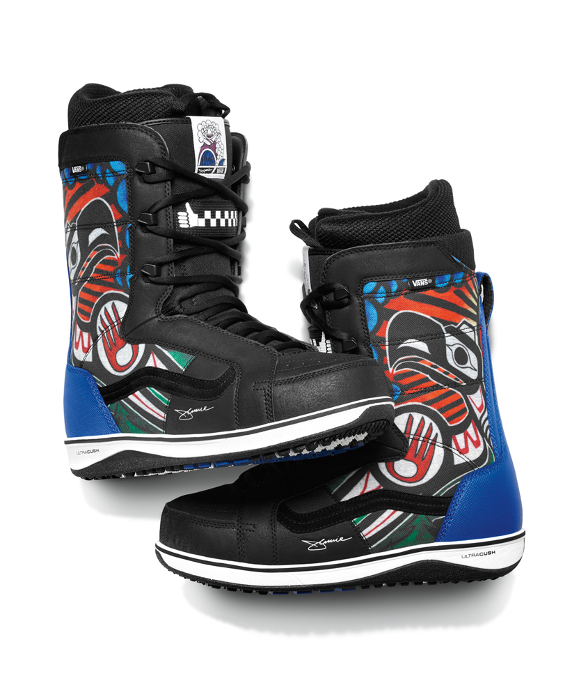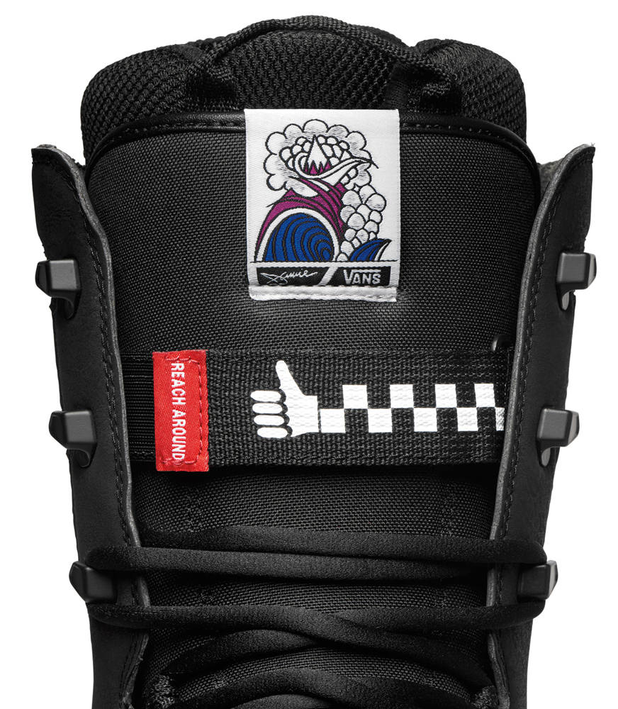 The Vans V-66 in Jamie Lynn’s signature colorway sees an elevated aesthetic this season, boasting premium material and function while highlighting Jamie’s own vibrant Pacific Northwest-inspired artwork. The V-66’s traditional lace-up boot construction is packed with features carefully engineered to form an all-terrain boot with freestyle inclinations. The Tongue Lock Down System helps pull down the tongue as you tighten the boot at the instep to eliminate heel lift, and the Reach Around cuff strap attached to the inside shell of the boot allows snowboarders the choice of wrapping the strap around the internal liner or the exterior tongue, providing a custom fit. The V-66 also features an internal wrap harness for a more personalized fit, Waffleflex outsoles for lightweight performance, heat-moldable Response liners for a dialed-in fit with precision response, and dual-density UltraCush V2 footbeds for mechanical support and dampening.
