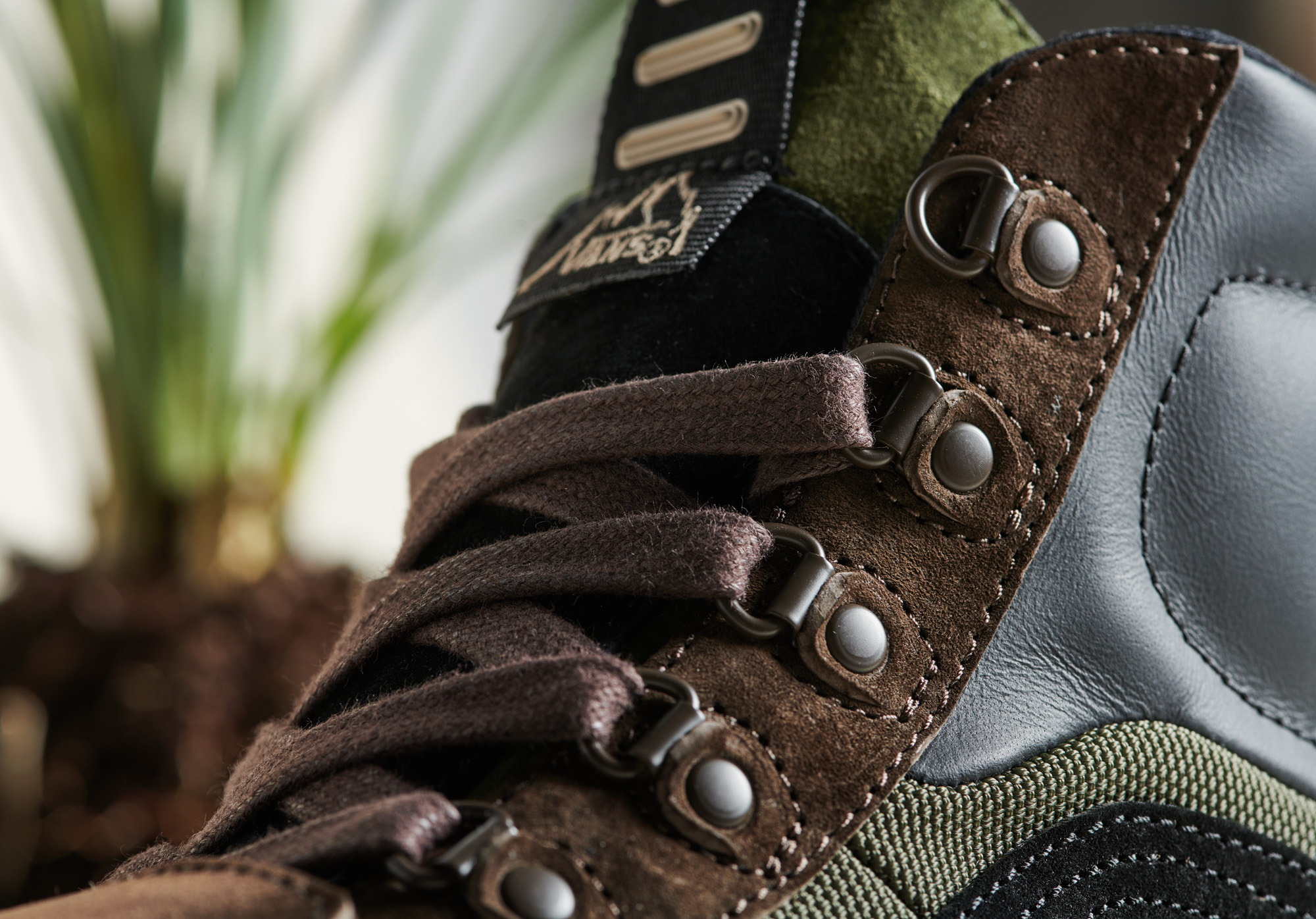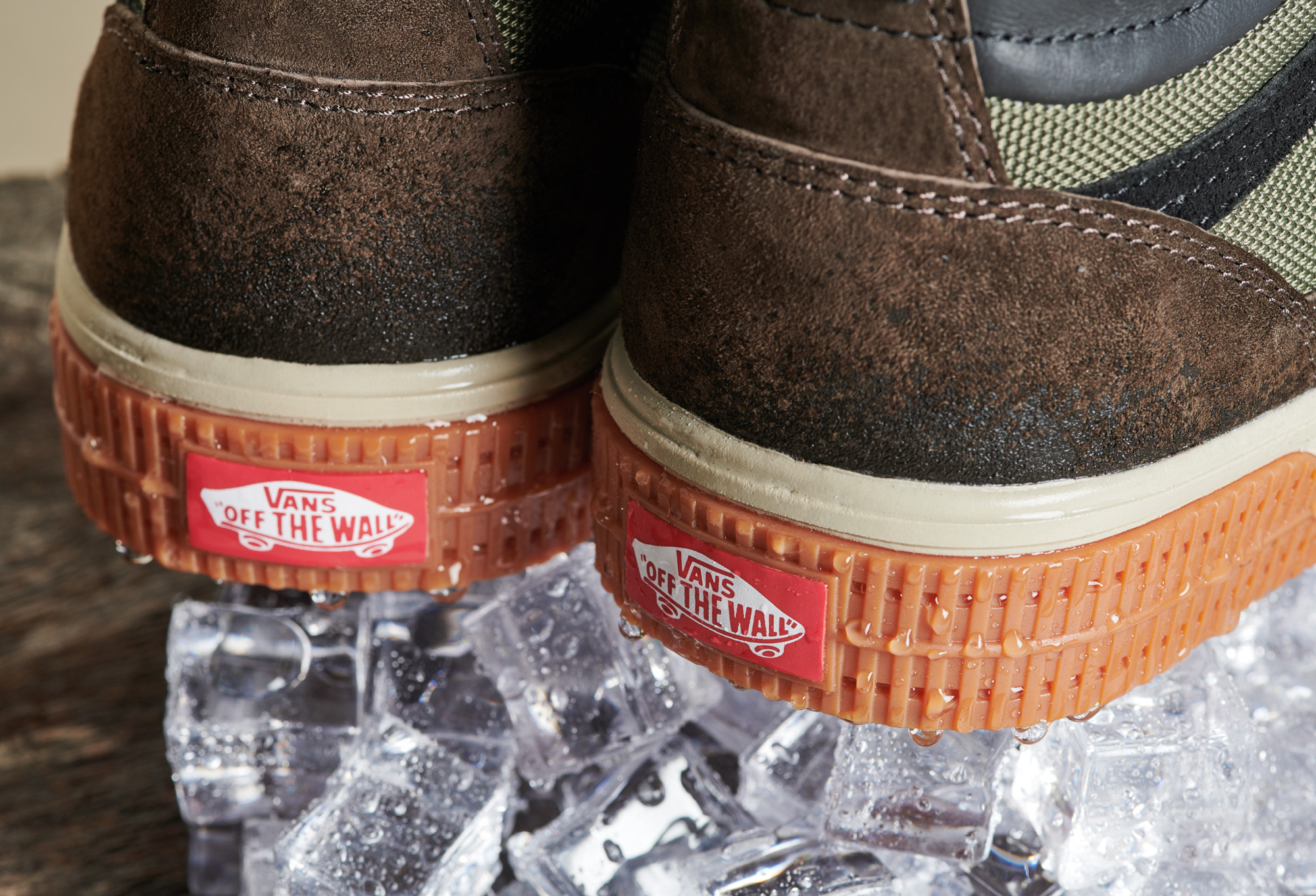 Designed with Vans signature style for colder climates and inclement weather, the Static CC MTE mixes weather treated materials, rugged features like D-ring metal eyelets for a more secure fit, mudguard paneling and a puffed collar for maximum comfort. All of this, combined with the warmth-retention and moisture-wicking properties of MTE 360TM technology, allows the wearer to look good and be warm wherever they go. Each model is finished with an upgraded ComfyCush outsole with reverse lug for ultimate grip and traction and will be available in three colorways this holiday.