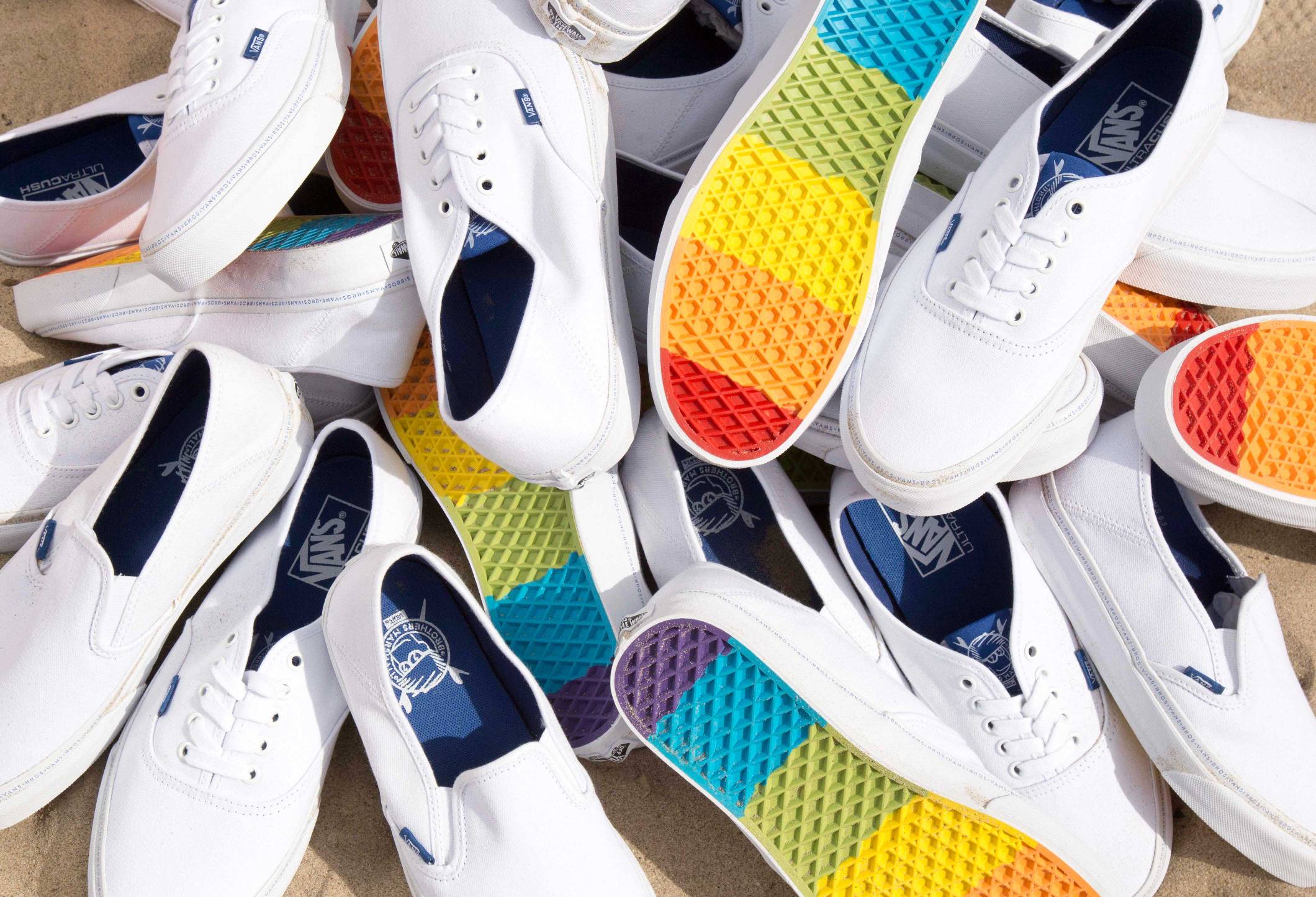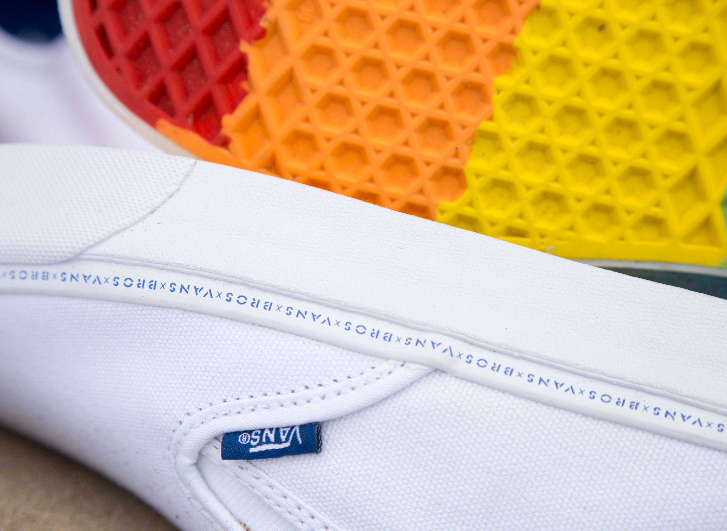 Undoubtedly the two most coveted pieces in the collection, Brothers Marshall taps into two timeless Vans surf styles to present clean, all-white renditions of the Authentic SF and the Slip-on SF, made special by an irresistibly vibrant rainbow gum sole. Each pair features easy on-off kickdown heel counters and natural true white canvas uppers. Two black sandal styles complete the footwear offering, the Slide-On and Nexpa Synthetic, each boasting the Vans x Brothers Marshall signature logo on the upper and footbed.