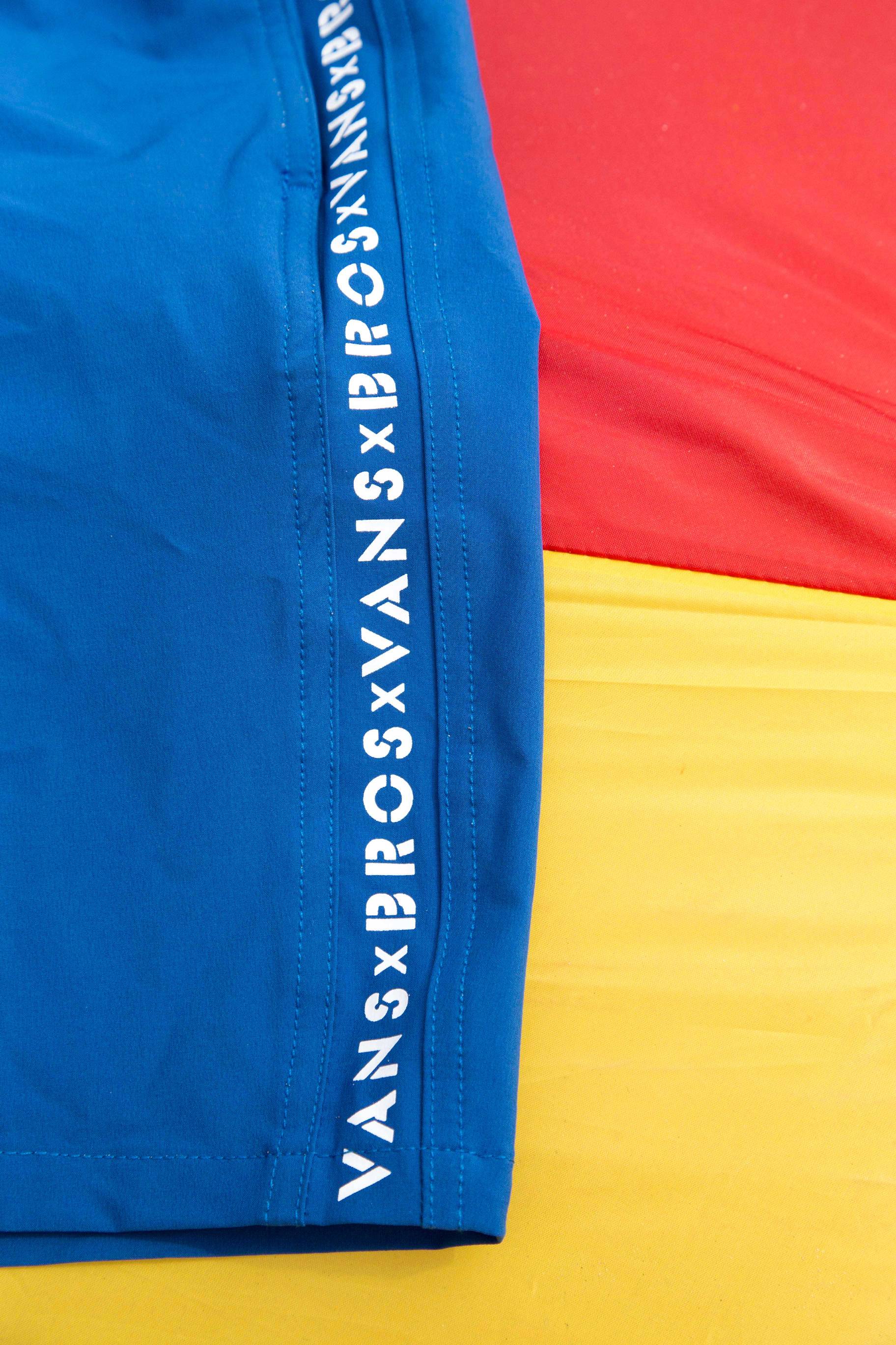 The Brothers Marshall Vans apparel offering epitomizes retro surf styling, showcasing a soft, white French terry washed cotton pullover and an 18” volley short featuring Vans’ 4-way Sturdy Stretch fabrication and a custom side stripe detail. A set of overdyed vintage cotton tees in royal blue and black paired with matching hats round out the capsule. Each apparel piece is trimmed with custom neoprene Brothers Marshall logo tags in the capsule’s unifying rainbow gradient.