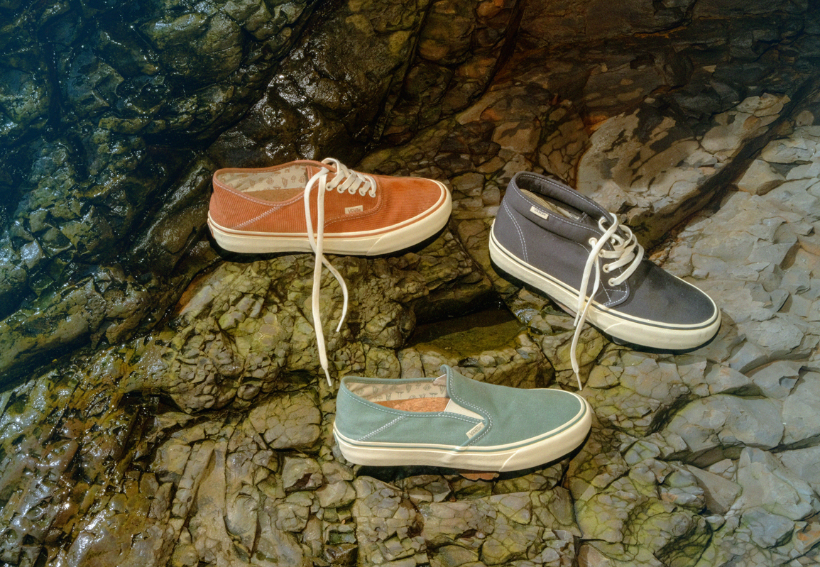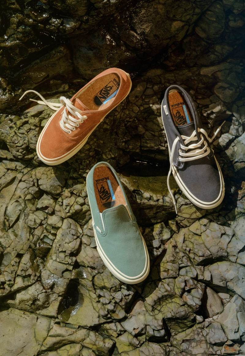 Vans and Mollusk link up for footwear and apparel collection. The capsule features iconic silhouettes, subtle textures, and standard colors that sit easily on hemp, corduroy, and cork. The project incorporates the Authentic SF, Slip-On SF, and the Chukka DX SF, plus three tees and two hats.