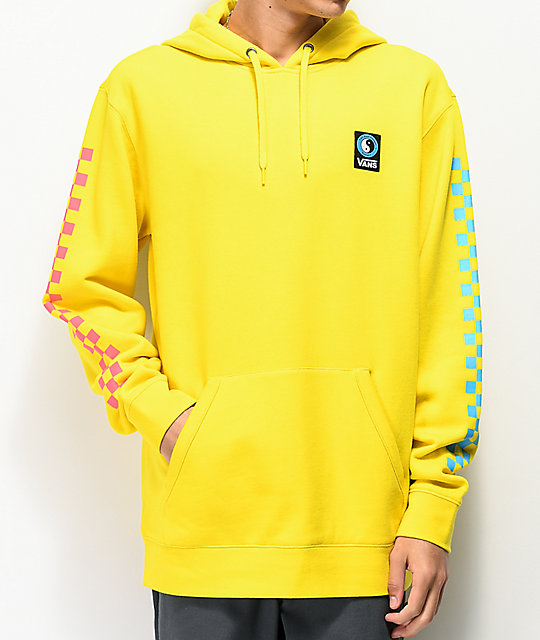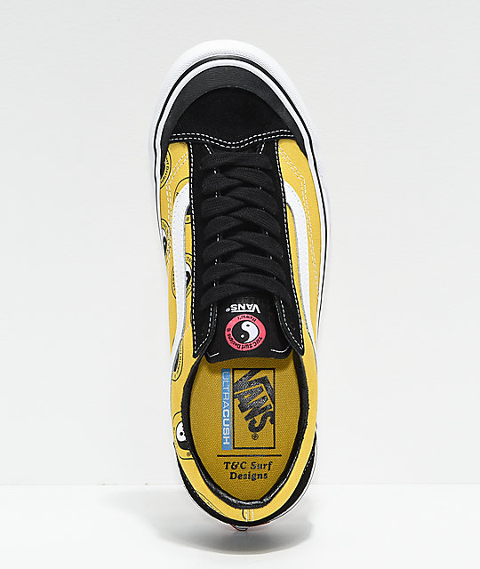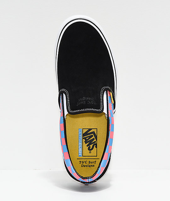Vans Surf has teamed up with T&C Surf Designs again, to create a limited run of shoes and apparel. This time around, we see the return of the Sk8-HI 138 Decon SF in a Cream & Pink colorway, featuring checkerboard printed foxing with a woven T&C label on the side panel of the upper. There are two newcomers to the lineup, the first being a Style 36 SF in a Black, Yellow, and White colorway, featuring iconic T&C Yin Yang logos printed on the foxing. The Slip-On SF comes to us in a Black suede upper, with debossed T&C logos at the top, and feature a Pink & Blue Checekrboard pattern on the mid panel. Each pair shares custom printed footbeds, woven T&C labels, and black foxing stripes. To round out the pack, there is a long-sleeve tee, and a hoodie to go along with the shoes. We have no idea about the distribution of these, but we do know that Zumiez currently has them available for pre-order on their site.