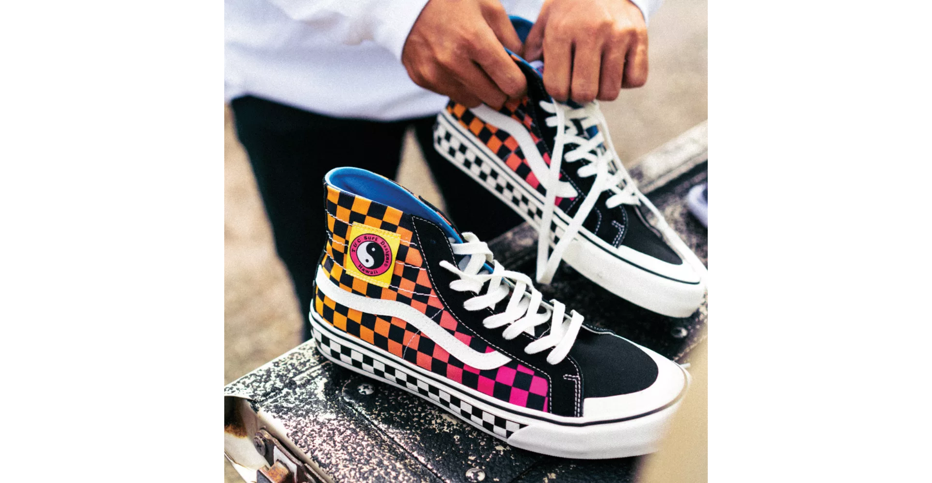 After all these years, T&C remains owned and operated by Craig, the original founder, whose grom-like stoke lands him regularly in the lineup or around the island enjoying the friendships that only a life dedicated to surfing can provide. In honor of T&C’s 50th anniversary, Vans worked closely with Craig to uplift T&C’s rich heritage, while still giving a progressive nod to the future of surf culture by offering new spins on classic color combinations, checkerboard accents, and the gradient fades that the brand has become famous for.