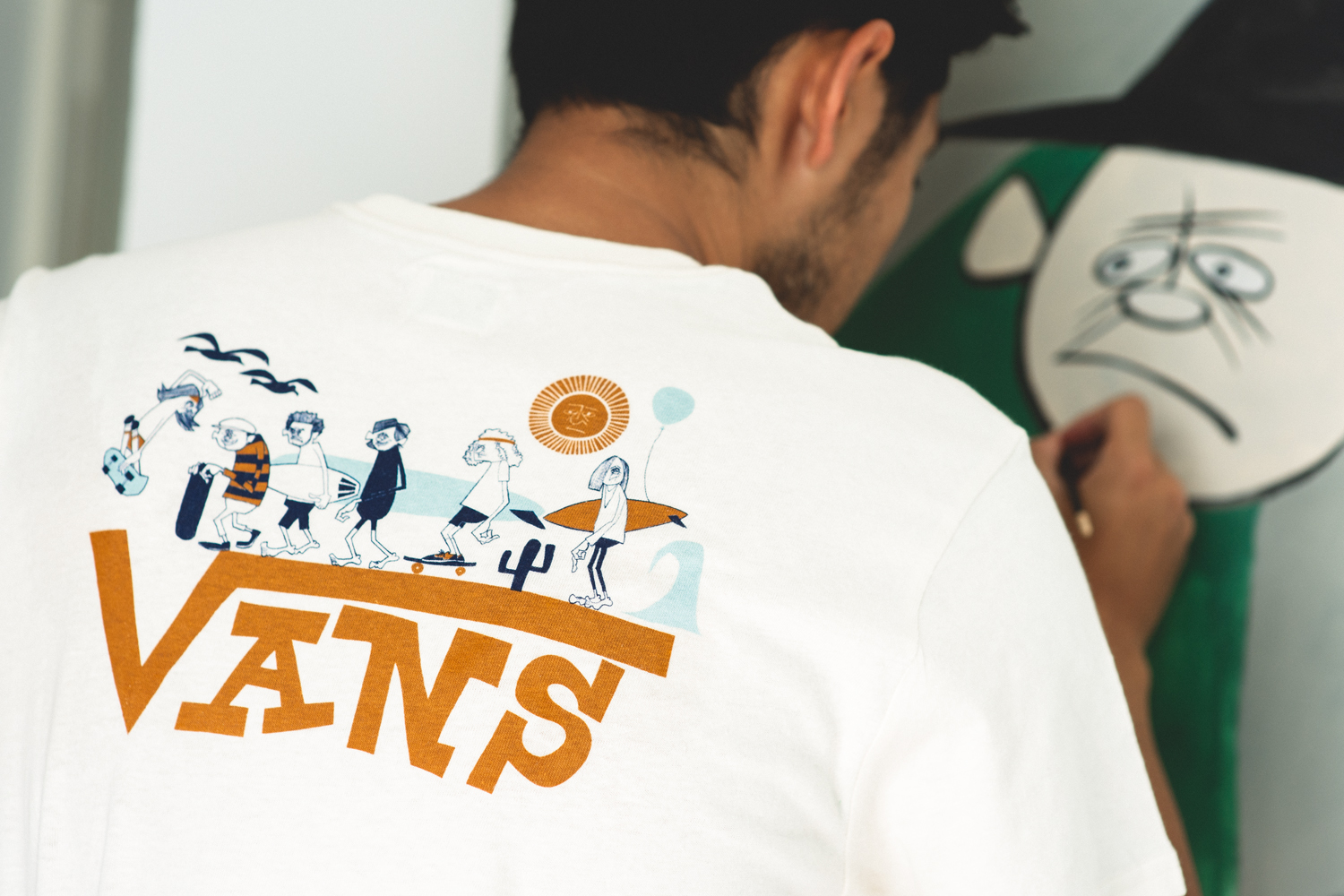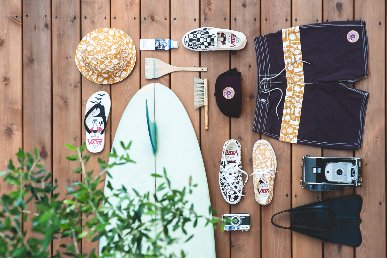 At the age of 25, Hanai left Japan for San Francisco to pursue an education in art. Hanai developed his own style after being inspired by artists within the counter-culture movement of the ‘60s. Known for his Japanese-infused, retro-styled illustrations, Vans is proud to collaborate with Hanai on a capsule that celebrates creative expression, surf and art.