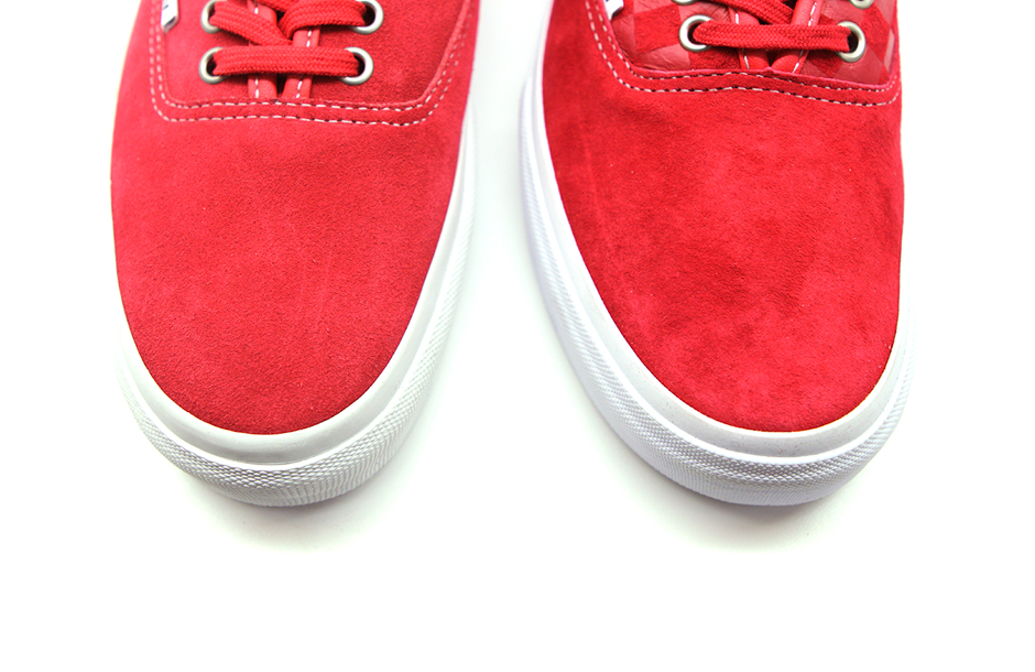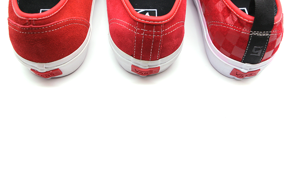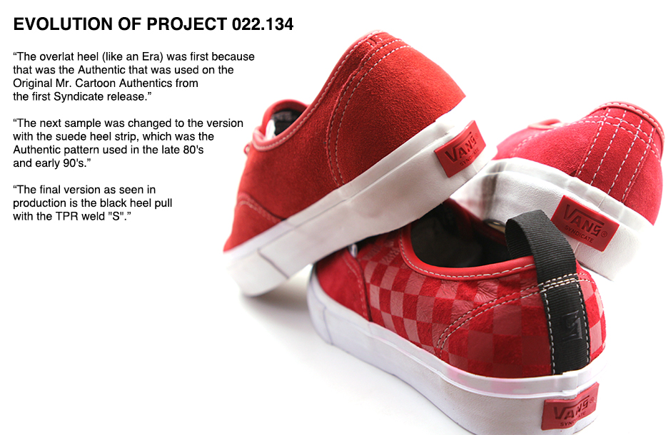 It isn’t too often that we get a little bit of back story to the design process of most sneaker releases, especially with Vans. With the amount of shoes they release each season across each division, it’s no big deal to make a minor change here or there for business purposes, without losing a step, but that’s not the case with some Vans Syndicate shoes, where every detail gets tended to. OTWS members are fully aware of the amount of change a Syndicate release can go through from sample to production model, making them coveted by collectors. Case in point, are these Authentic 69 Pro “S” shoes. When the first pics surfaced of these, the first thing that caught our attention was the nylon heel pull strap, and right away the first comments were “I hope those make it to the production version”. Well, after trying a few other options for the heel of this shoe, including the OG heel strip with the vertical stitching, found on vintage Made in USA pairs of Authentics, they decided to go with the heel pull, which was perfect. This will set this pair apart from all of the other Authentics out there, and I’m sure these will not sit long on shelves.