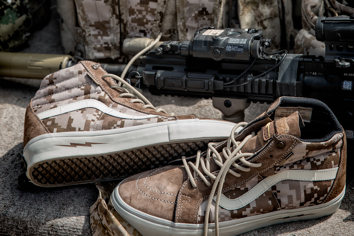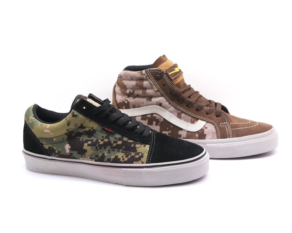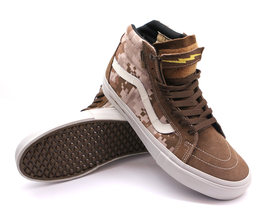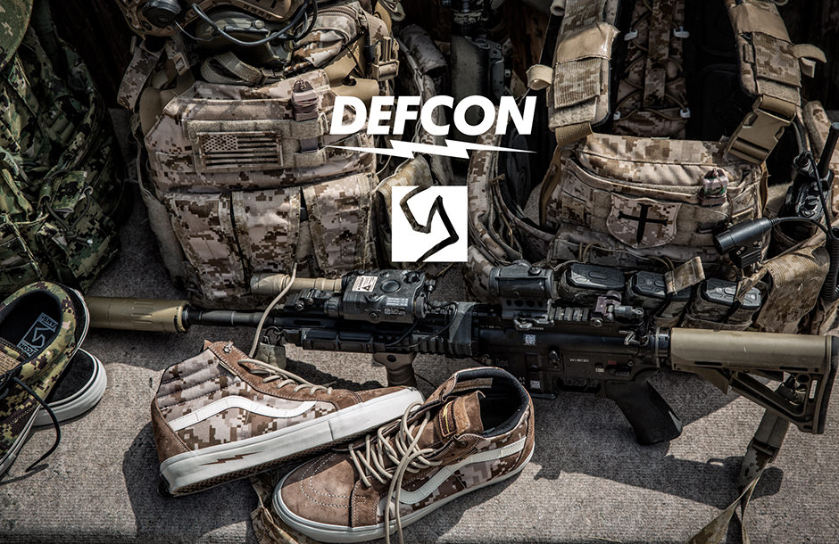 The highly anticipated, wait let me rephrase that, the most unforeseen cluster f*ck of a Syndicate release in years has started to drop upon us! That’s right, the collaboration, but not really a collaboration because it’s all in-house, with the recently exposed DEFCON group, has been popping up all over the world at Vans Syndicate accounts. The Sk8-Hi Notchback Pro “S” is selling out faster than the Old Skool Pro “S”, but both are disappearing faster than free beer! I typically give the heads up when a release is available online, but as soon as these releases pop up, they’re pretty much gone in an hour or so. I’d rather let the loyalists to each shop get theirs first, or those who are doing their homework! If you’ve stumbled upon us through a web search, and you’re unfamiliar with how to get a pair of these, then you first have to know a few things. These awesome Vans shoes were created under Vans’ core skate shop exclusive division, known as Vans Syndicate. They’re only available from local community skate shops. You won’t find Syndicates at a mall, or local sneaker boutique. Click here for a list of Syndicate dealers near you. Next, you need to know that these were produced in very limited numbers, and when word gets out about limited availability, then the sneaker resellers will come out in droves to try and head you off at the pass, so they can make money off of the high demand. Sneakers are a commodity now days, and are bought and sold through various sneaker exchanges these days, the most popular being eBay. Right now, these seem to be hitting the $160 mark. Retail is $80. $160 is high for a pair of Vans, yes, but low compared to your typical Nike Basketball shoe, or Jordan retro, and you can’t put a price on this type of authenticity and coolness. Plus, you better believe that a ton of soldiers, gun nuts, preppers, and military enthusiasts are going to be after these as well. DEFCON always brings the heat to the table, and you’d better not sleep, otherwise you’ll be paying sucker reseller prices. Anyways. Good luck hunting down pairs, as more shops will be getting these throughout this week and next. Call around. Put in that work! Make some connections. Be nice, and courteous, and that shop that typically doesn’t do phone orders, just might be willing to help out a nice person!