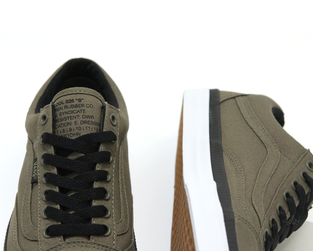 I think this release is one of the dopest of the year for Syndicate. The earth-tone colors, matched with a unique foxing band, and classic white vulc sole, makes these an easy addition to your current lineup. Eric Dressen is 2 for 2 so far, in my opinion, when it comes to his collabs with Vans Syndicate. You may recall his perfectly executed wool Half Cabs he did about 5 years ago. Stunning. These have a more utilitarian, rugged aesthetic, with military influence, and I am definitely not mad at that. I love me some olive drab Vans, and I say keep ’em coming!