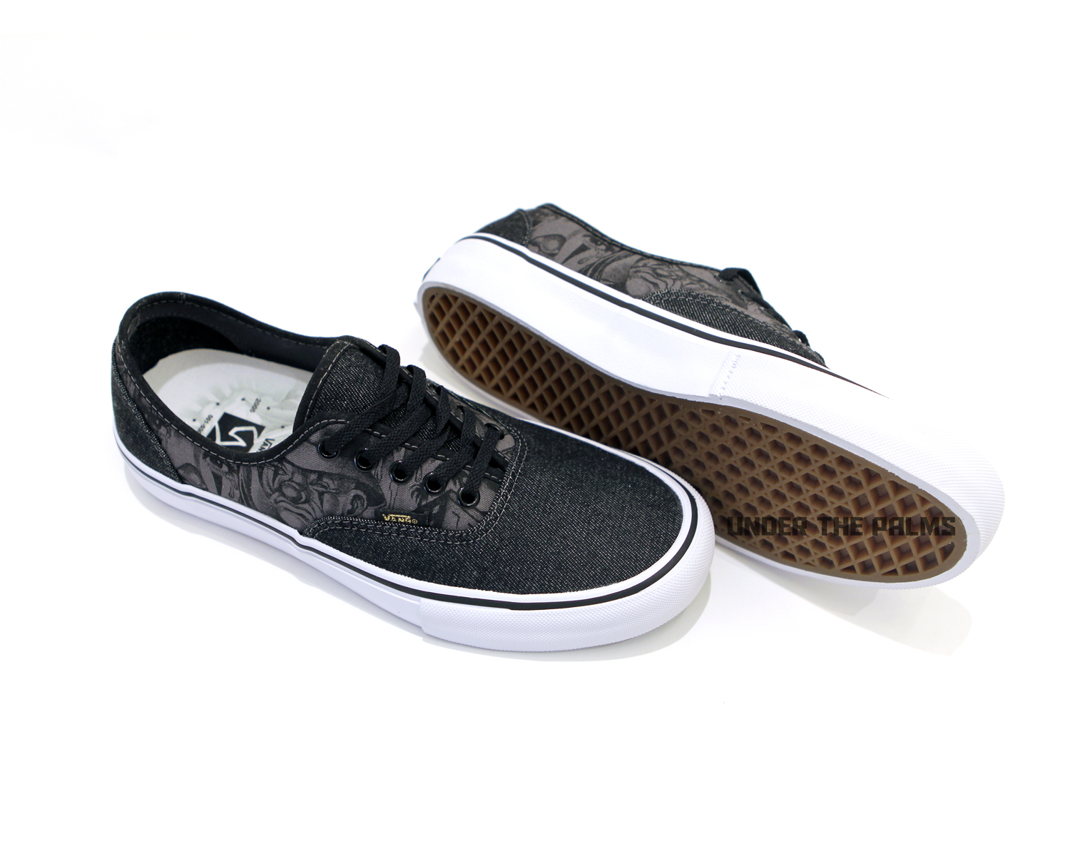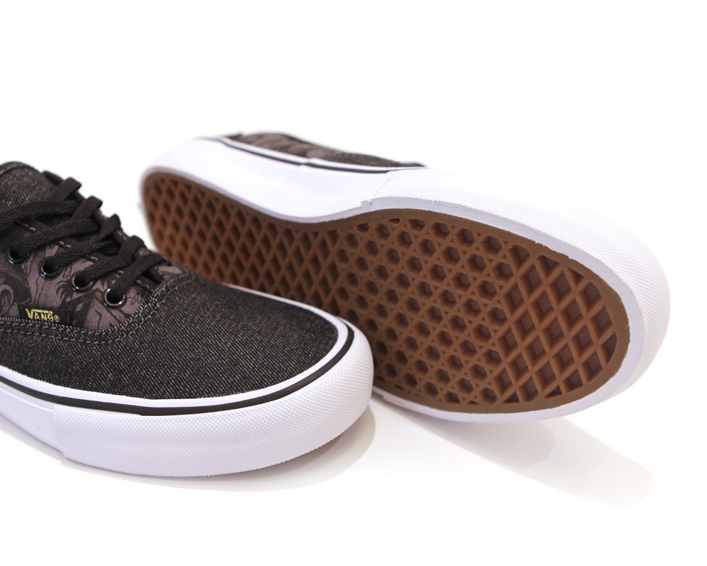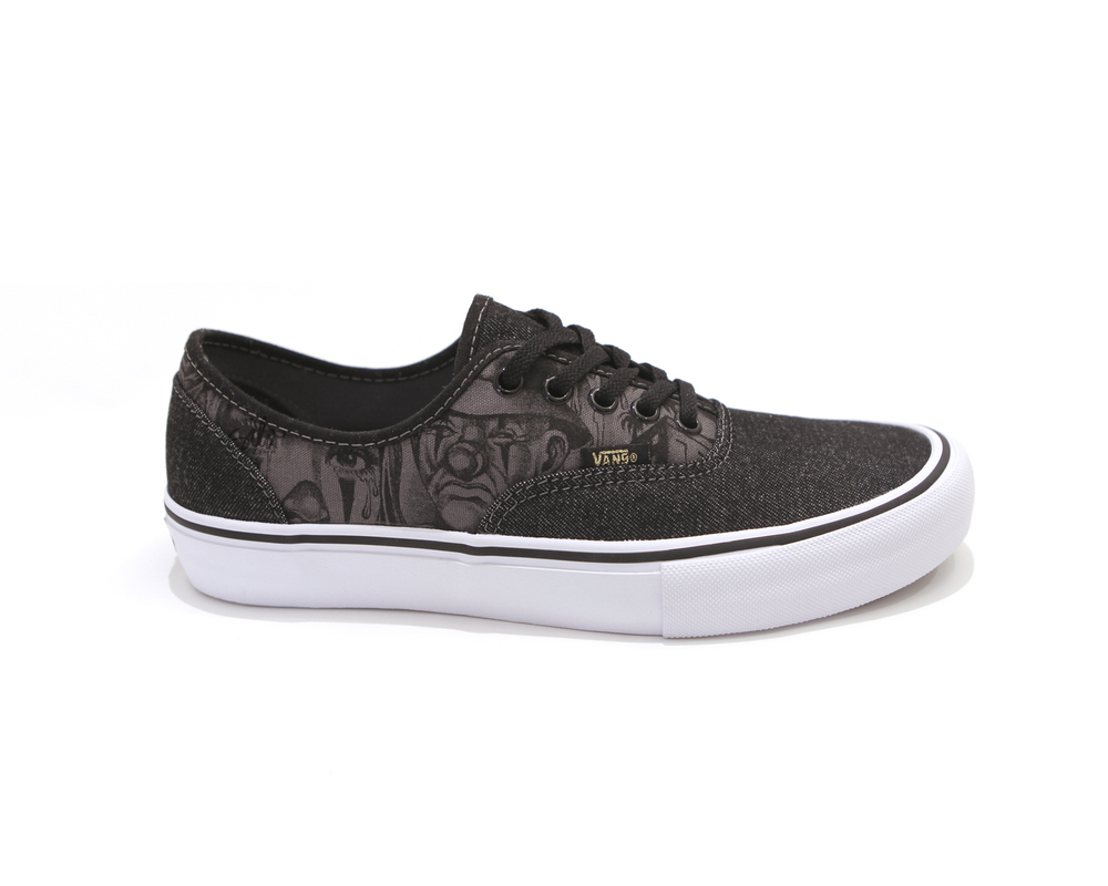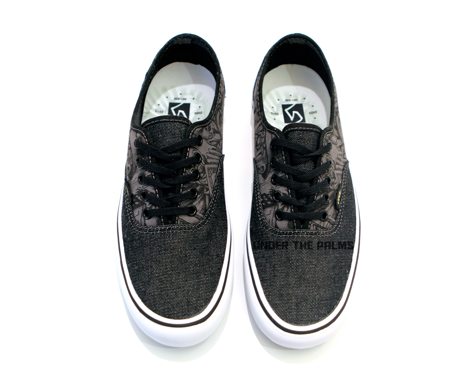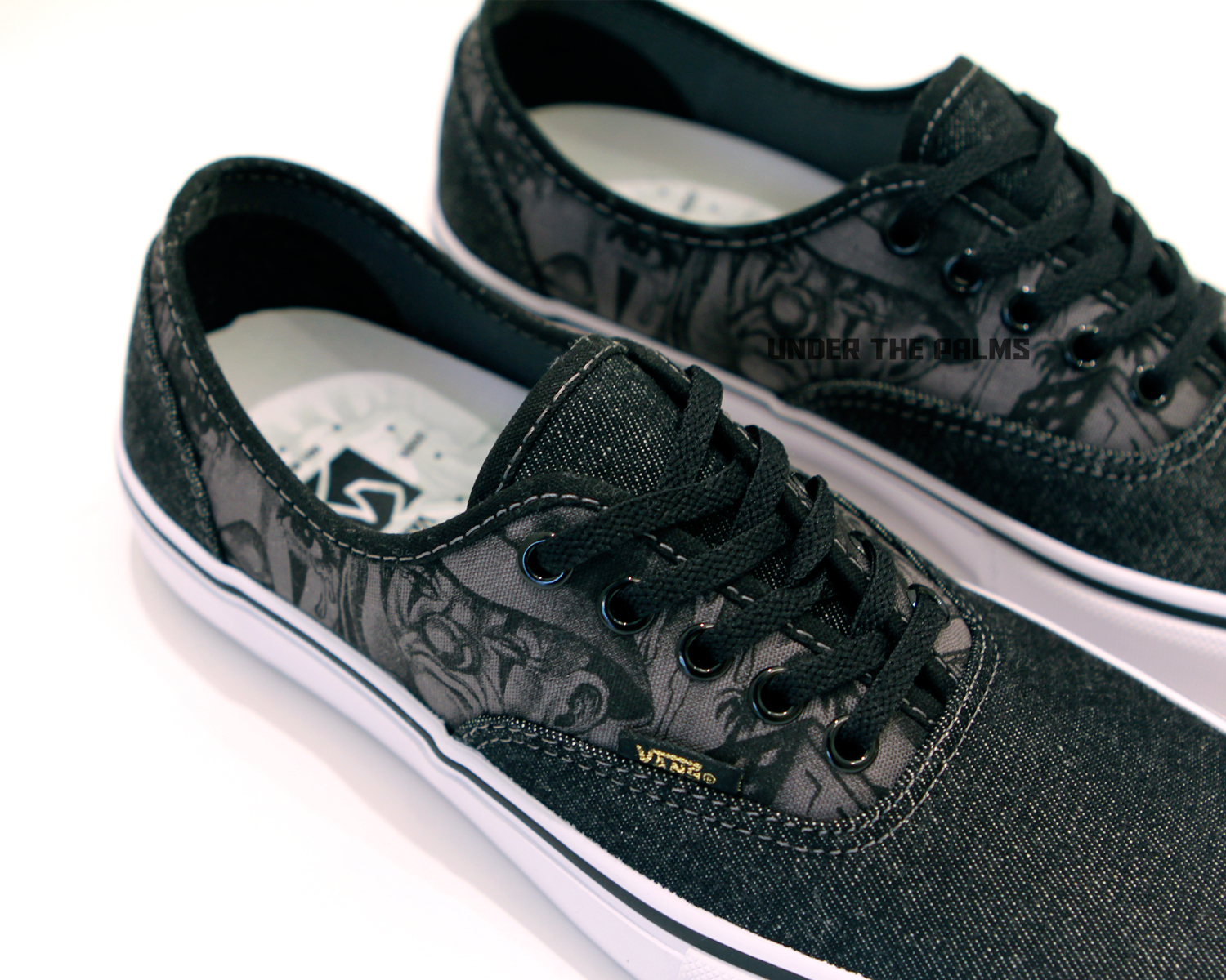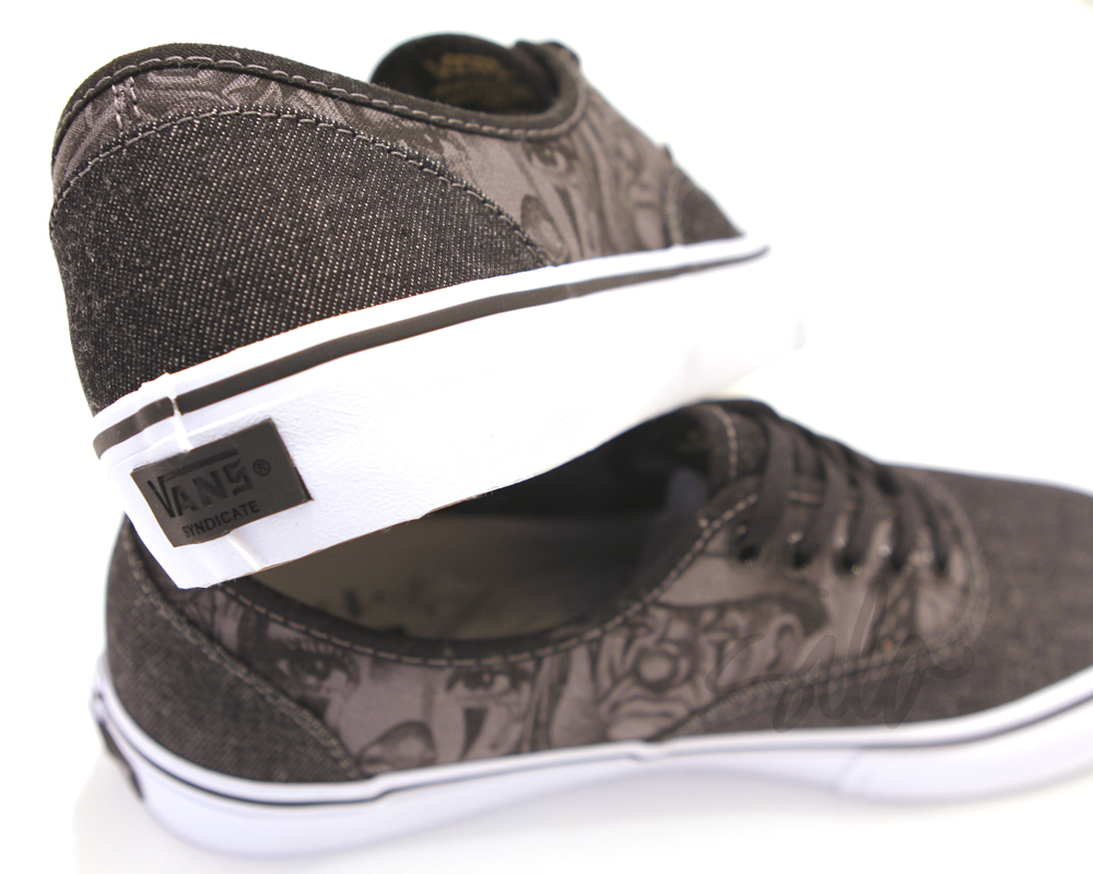 Vans Syndicate presents the MISTER CARTOON Authentic “S”—originally released in “Blue”, “Penguin” and “Black” with printed canvas quarters and denim toe and heel—this July in black denim and gold accents. Original MISTER CARTOON artwork is screen printed on the quarter panels and footbeds. The Vans Syndicate x MISTER CARTOON anniversary project launches worldwide on Saturday, July 18th.