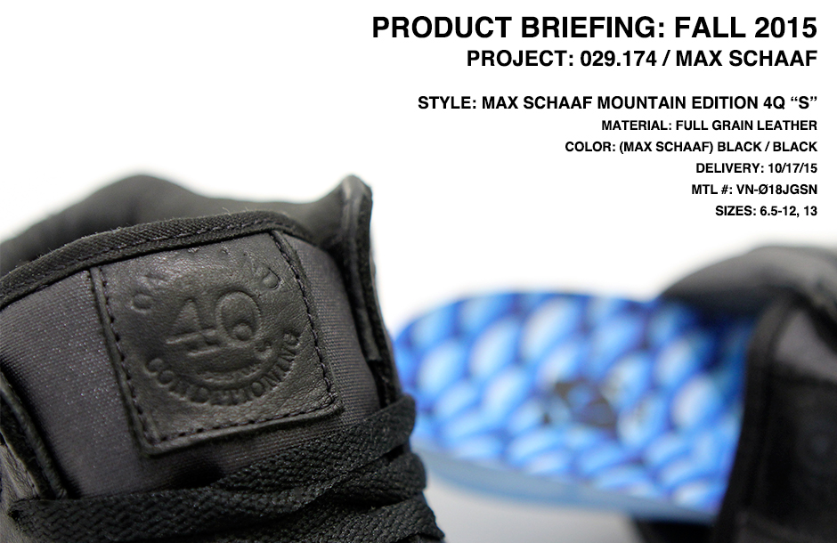 Known as much for his creativity on four wheels and a wooden deck as he is with two wheels and American iron, veteran skateboarder and motorcycle builder Max Schaaf is no stranger to the Vans Syndicate family. With his first Syndicate project dating back in 2009, Schaaf’s influential persona is defined once again in the Mountain Edition 4Q “S”, a premium, heavy-duty mid-top, available worldwide this Saturday, October 17, marking the fourth release in celebration of Vans Syndicate’s 10th Anniversary.