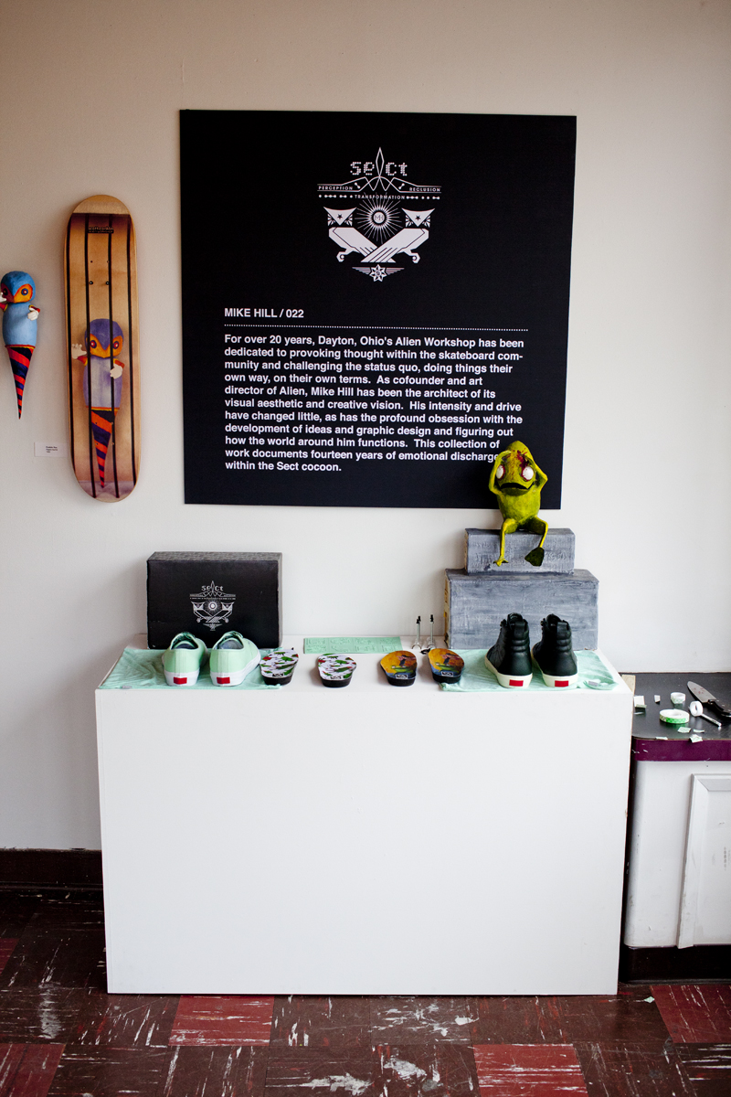 “On Saturday, April 13, Alien Workshop co-founder and art director, Mike Hill, held his first-ever solo art show at Chicago’s Peanut Gallery. The event was proudly presented by Vans Syndicate as a celebration of sorts for their collaboration with Hill on a couple of amazing, from-the-ground-up skate shoes. We went to see twenty-plus years’ worth of Alien Workshop art, including OG puppets and dioramas from the earliest days of AWS everslicks, and a very complete collection of Hill’s work up to this day.”