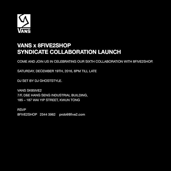 Here’s a release that snuck in at the last minute, and was first revealed at the “These Days” 10 Years of Vans Syndicate exhibition at the Known Gallery last month. Hong Kong’s 8FIVE2 has teamed up with Vans Syndicate to release this amazing collection to commemorate their 15 year mark. The overall aesthetic is straight out of a 1999 Polo ad, with rich navy, red, and yellow tones, something that 8FIVE2 founder Brian Siswojo is a big fan of, as well as a lot of us older Hip-Hop heads. We’ve been hyped about these, and it’s nice to see them finally arrive to finish off this current Syndicate run, until they are back again. Great job 8FIVE2!!!