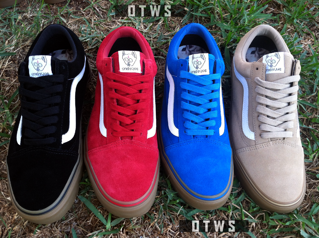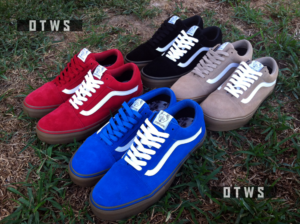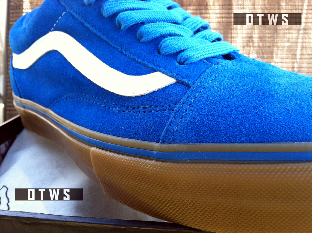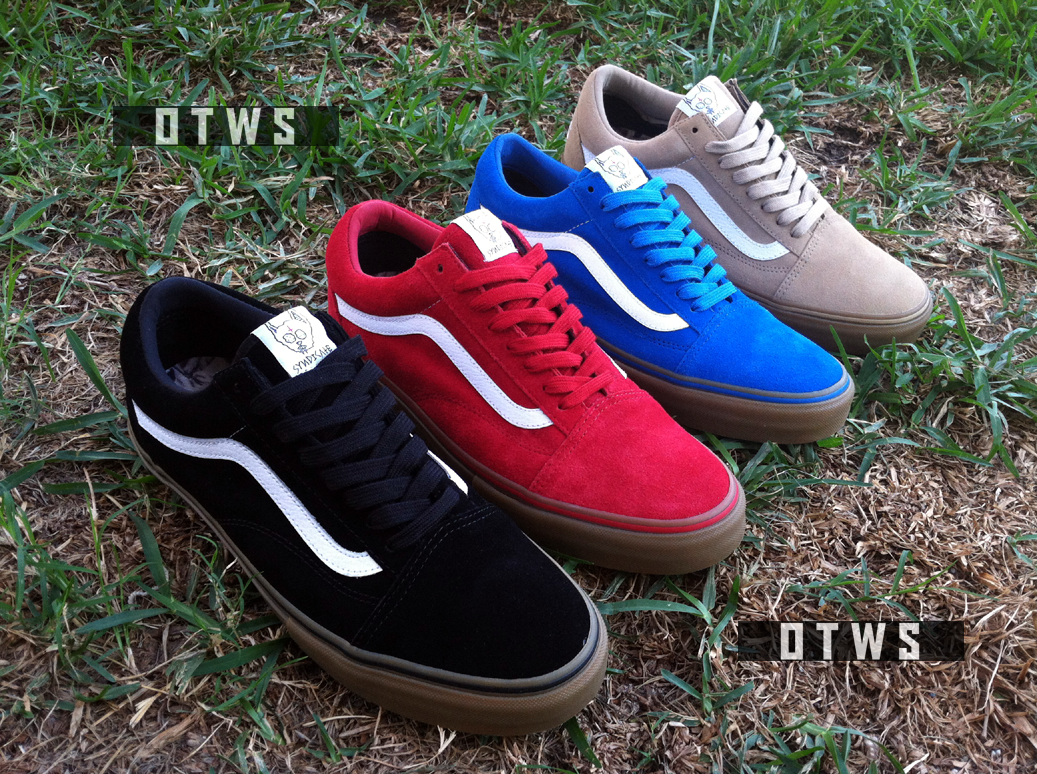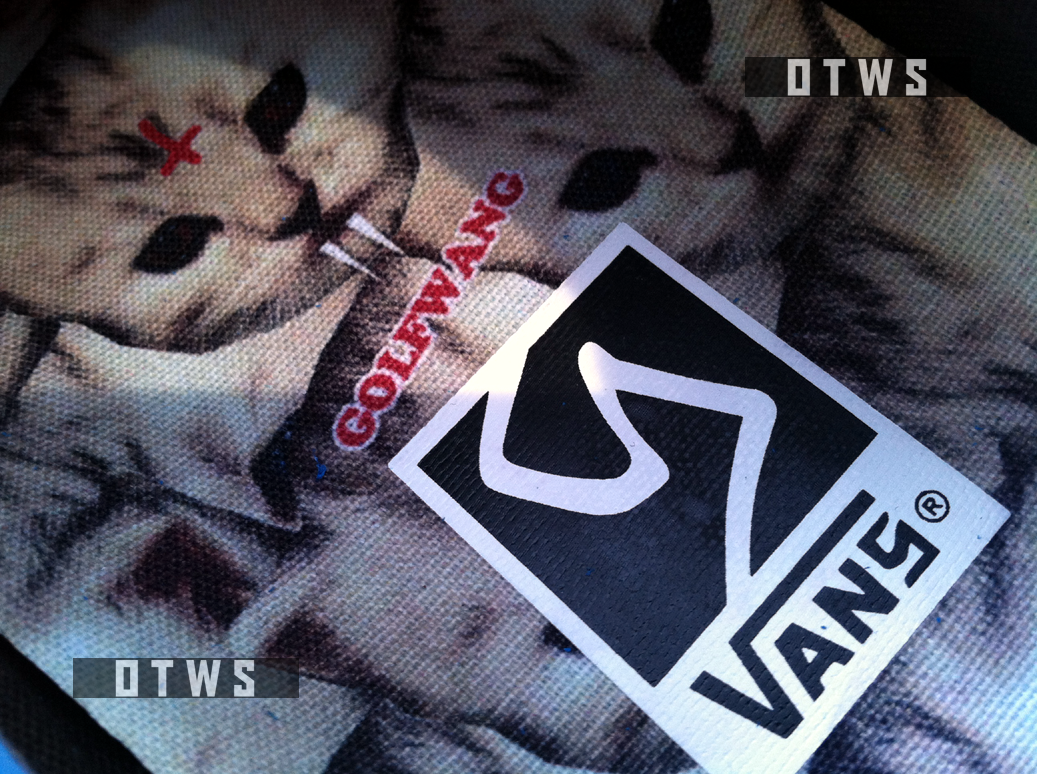 Well here they are! The shoe all the kids have been running around frantically trying to score, some successful, while others a day late and a dollar short of their own local sneaker reseller! I don’t think there has been a more underestimated release for Vans, in a long long time, than the Vans Syndicate x Odd Future Old Skool Pro “S”. People still aren’t quite sure how to point out the demographic for this fan base, but one thing’s for sure, it’s a large fuckin’ fan base! To tell you the truth, most of us Vans sneaker collectors, mostly older guys, copped these purely from a collector’s standpoint. Not taking anything away from the shoe’s design though, because Tyler “created” one of the best Old Skools I’ve seen in a long time. The color combo is instantly recognizable, and I’m already a fan of the gum sole, so when I saw the early pics of these, I knew I was going to end up with at least one or two. There’s definitely a core skater vibe to these. Something most skaters can gravitate to. It’s not over the top with crazy materials, or wild colors, yet the embroidered “GOLF WANG” on the heel, and the OFWGKTA kitties on the footbed and backside of the tongue are just the right amount of Odd Future needed for a dope collab, without turning away us regulars. The all over suede is premium, and is just perfect. Smooth. Quality. Durable. What else can I say?! The collar lining has this unfamiliar material, that feels like leather, but it isn’t. It’s sort of like a nubuck, or even some synthetic moisture-wicking material. Soft is what it is!