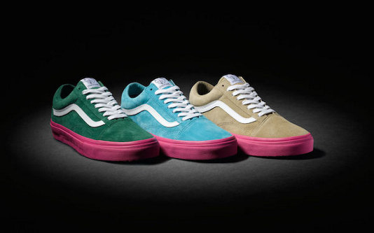 “This fall, Vans Syndicate joins forces with Odd Future’s Tyler the Creator to give the classic Old Skool silhouette a Pro “S” treatment with Ultracush impact sockliners and Duracap reinforced uppers in three bold suede and vivid pink colorways. The Vans Syndicate x Tyler The Creator Pack features the Old Skool Pro “S” in three color schemes including Blue/Pink, Wheat/Pink and Green/Pink.