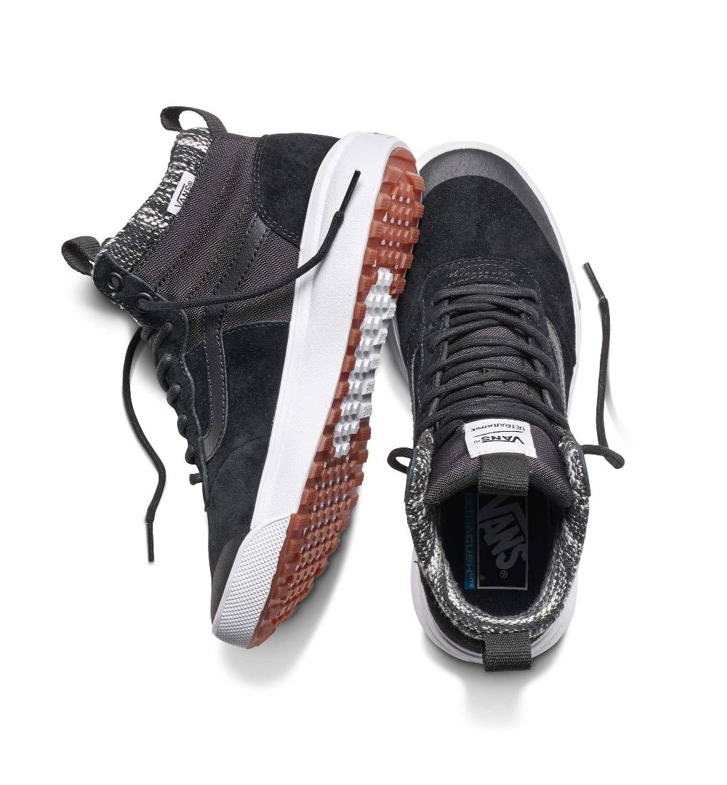 “Introducing the first evolution of Vans’ latest design innovation, the UltraRange, Vans expands the collection this holiday to debut the UltraRange Hi, a new high-top construction. Upholding the model’s signature co-molded midsole, the UltraRange Hi offers additional ankle support and cushioning while maintaining the functional benefits of merging Vans UltraCush™ Lite foam with Vans’ original waffle outsole for elevated comfort and versatility.