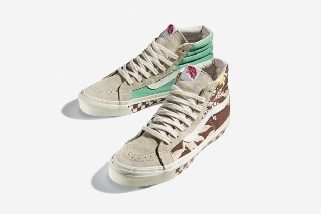 Vans Vault presents the Aloha OG Pack for Spring 2013. Consisting of the OG Sk8 Hi and the OG Era, both come in a Maroon Aloha/Dusty Jade Green and Blue Aloha/Sea Pink color combo. For some reason, the two-in-one style is on a lot of designers palette’s these days. What is this, the Phantom of the Opera?! They added the iconic Vans checker pattern to the mid sole for that added vintage Vans vibe. You can cop these now at your local Vault dealer, like Undefeated in Silverlake. Stop by and say what’s up to another one of our extended families that we show lots of love and support for. Chris and the gang will tend to all of your sneaker needs over there. Their Vans knowledge runs deep!