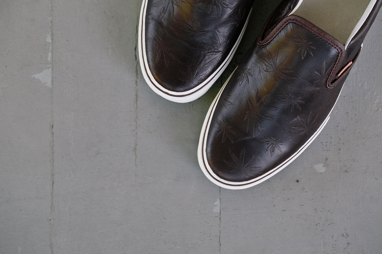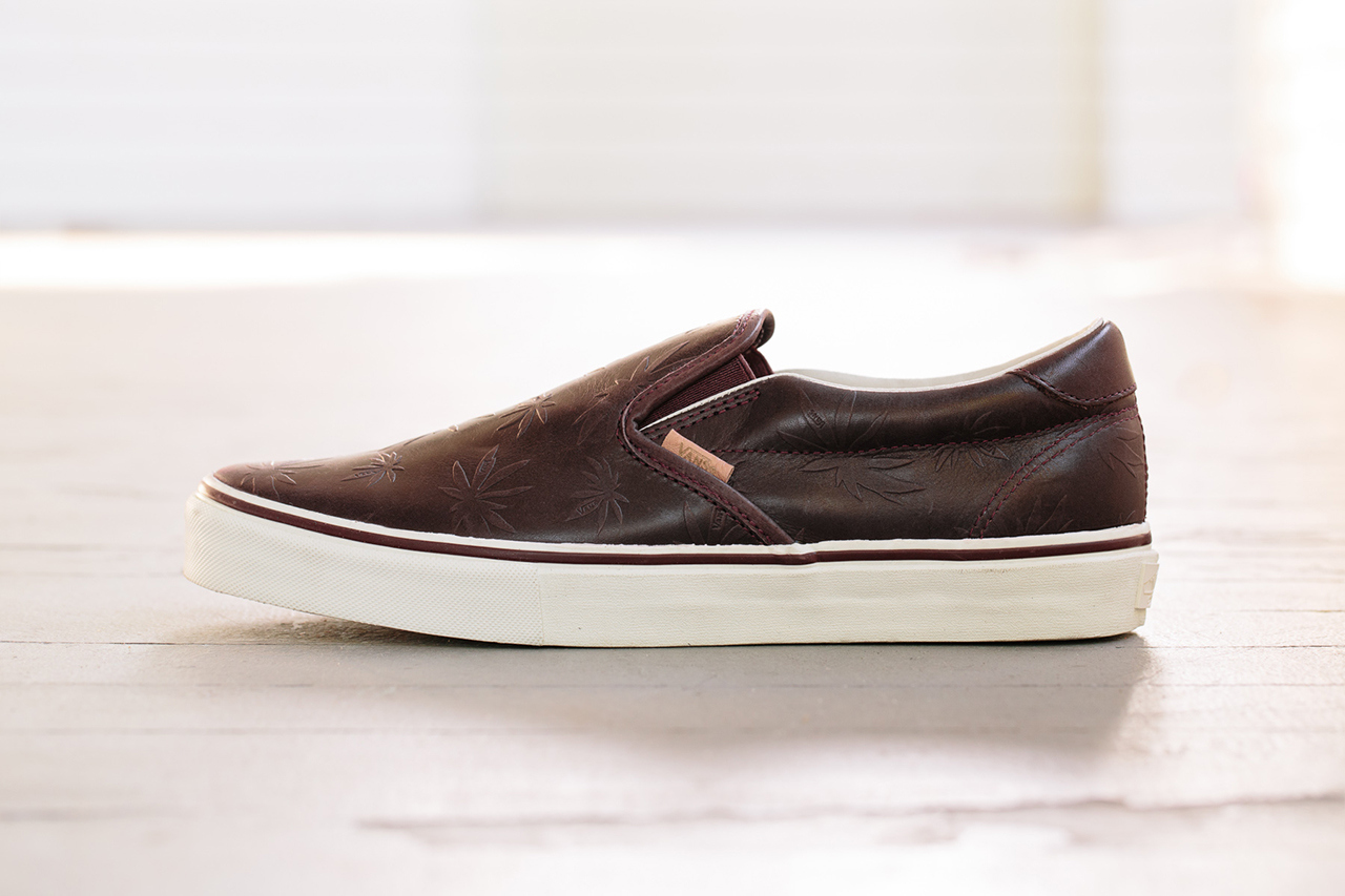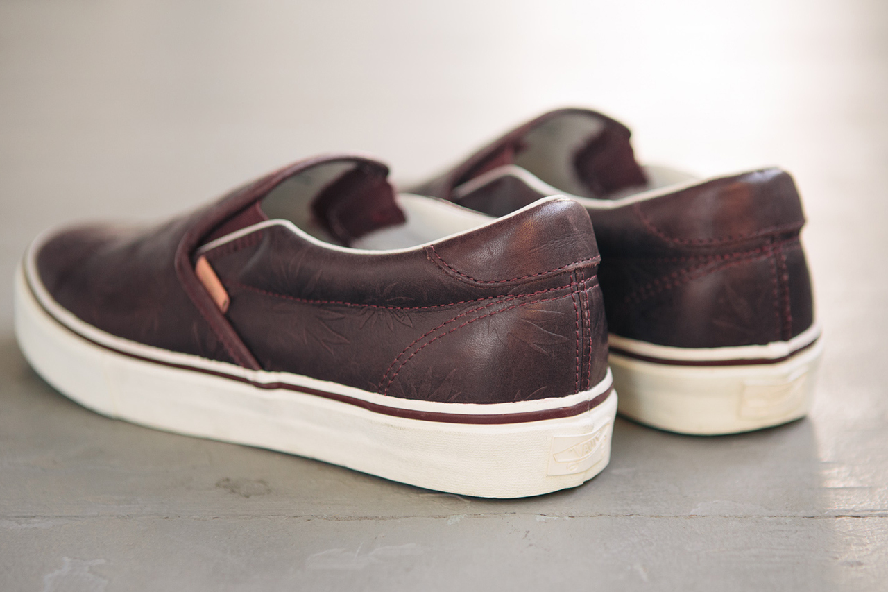 Here’s the latest news to come out of the Vans Vault team. Releasing in September, is this Classic Slip-On 59 LX “Leather Palm Leaf.” Keeping up with the heritage of Vans, an embossed palm leaf design was utilized on a premium leather upper, perfect for those semi-casual occasions. They will be available in two colorways, seen above, and after the jump.