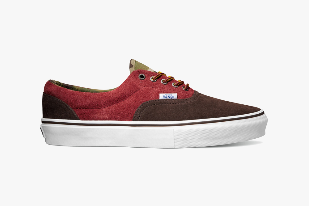 “For Fall/Winter 2013, Vans Vault applies a tasteful camo print to their popular Era LX silhouette. Adding a little bit of flair to an otherwise subdued sneaker, each colorway features a two-toned suede upper with a contrasting camo pattern along the tongue and heel cup. Look for the pack to hit select retailers in October.”