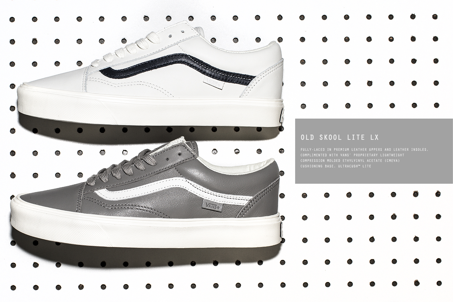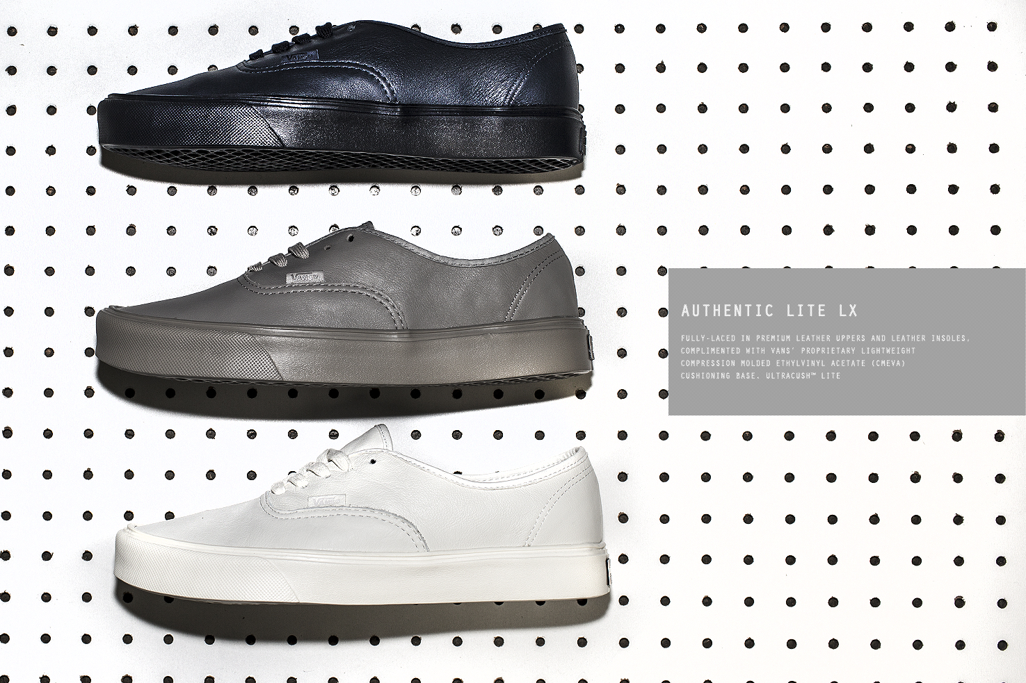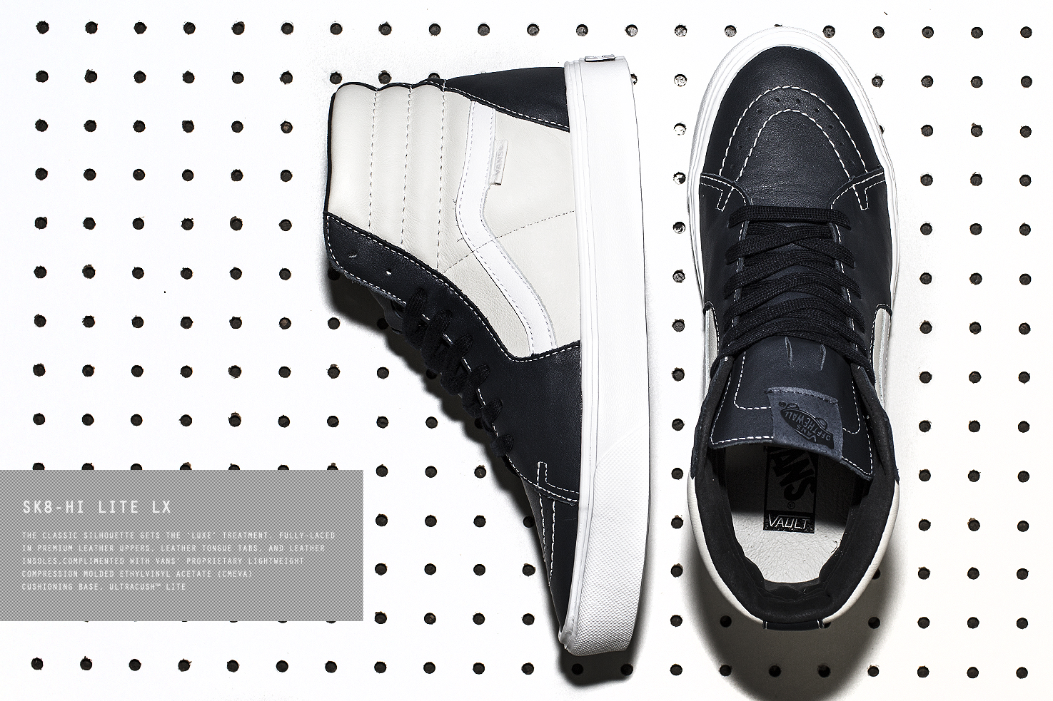 Blends gives us a preview of the latest and greatest offerings from Vans Vault, featuring the inaugural debut of the Lite LX model. Typically Vans shoes start off in the Vault line, and work their way down to the mainstream channels of Vans products, but this time it started out a little bit backwards. What started off as an LXVI feature, which then made it’s way to every Vans store, the Lite line has been wildly successful, obviously due to their level of comfort compared to our typical beloved Vans. The key feature is the CMEVA (Compression Molded Ethyl Vinyl Acetate) outsoles also known as Ultracush Lite technology. With their smart “PICK ME UP” orange tags adorned on every pair, they sparked people’s curiosity, and once Vans started creating them in the classic colorways that we’re all familiar with, that’s when people really started to give them a chance. We now get to see a premium versions of these shoes, by way of the Vault Lite series. For the first round, we see 3 Authentic Lite LX’s, 2 Old Skool Lite LX’s, and 2 Sk8-Hi Lite LX’s, wrapped entirely in premium leather with leather insoles. These will be available this weekend at all Blends accounts that carry the Vault by Vans line, as well as online.