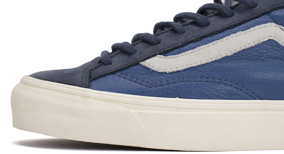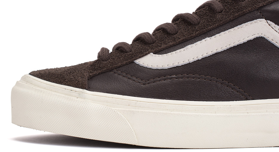 “Originally introduced in ’77 the style #36 eventually evolved into what is known today as the Vans Old Skool. For Vans this was the 1st significant departure from the vans deck shoe template & offered a more sneaker-like finish. Today the Style 36 is only seen through the Vans Vault line-up, featuring premium leathers and a cushioned footbed in classic inspired colors. For more info on the style #36 and an in depth look at the rich history behind Vans check out UK based retailer Pillow Heat.” Look for these to start showing up soon at your local Vault dealer.