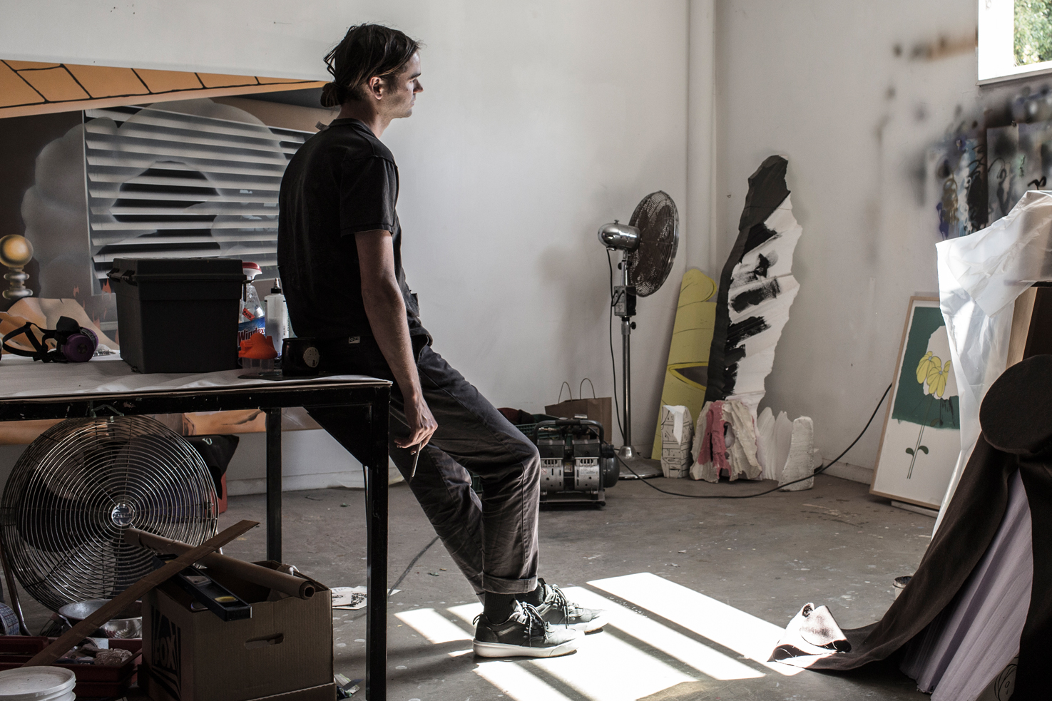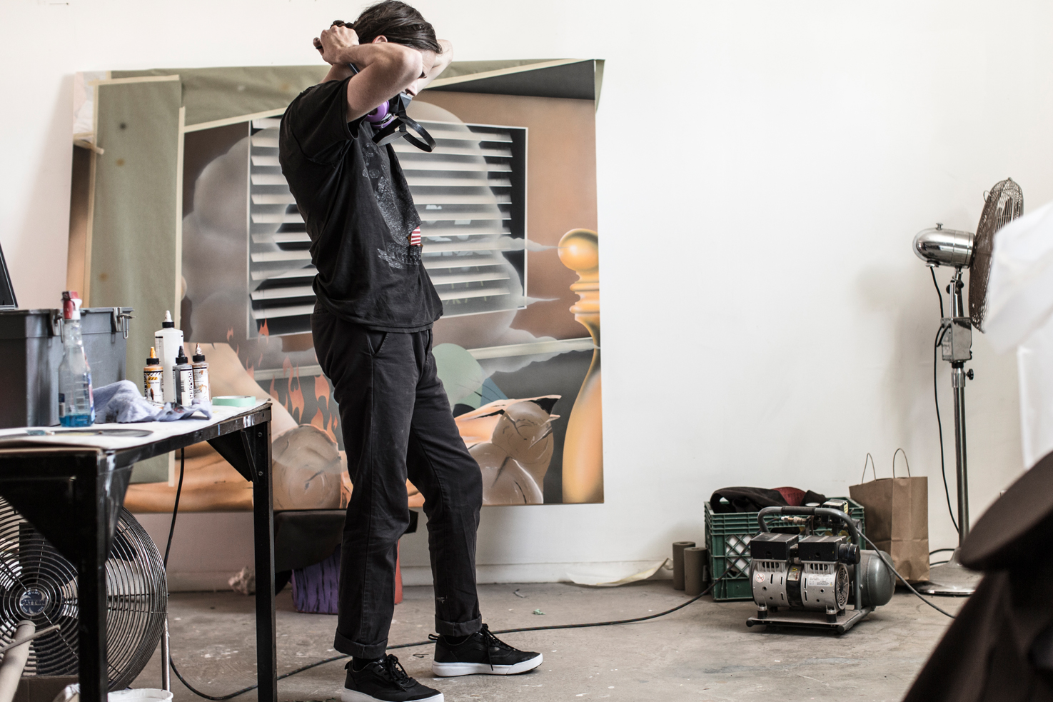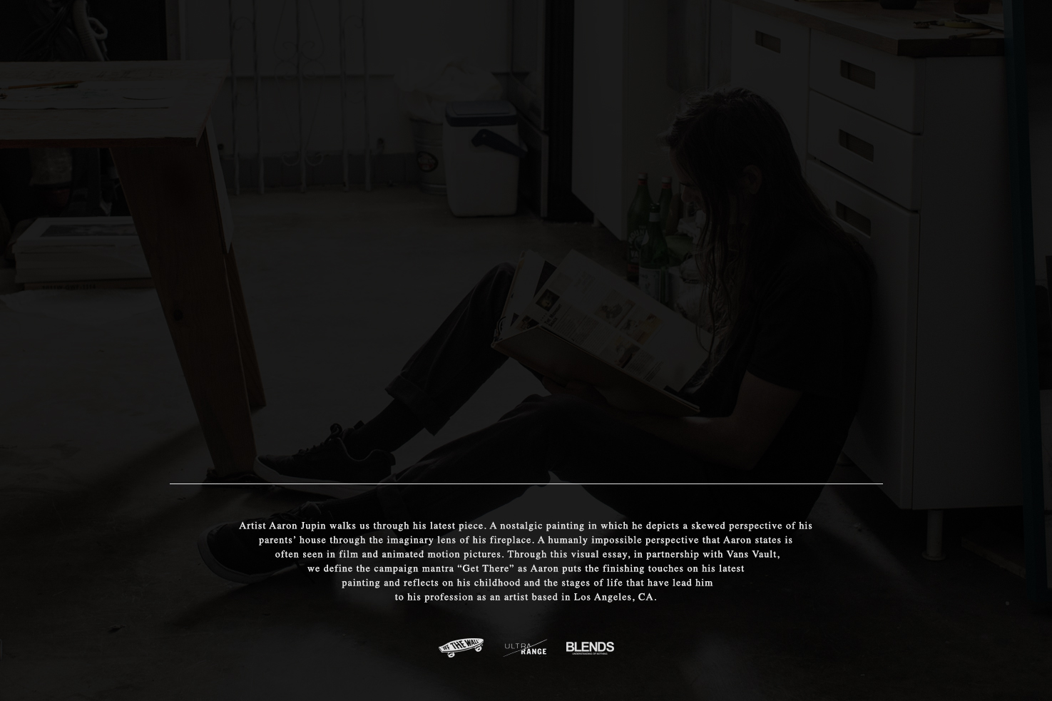““Artist Aaron Jupin walks us through his latest piece. A nostalgic painting in which he depicts a skewed perspective of his parents’ house through the imaginary lens of his fireplace. A humanly impossible perspective that Aaron states is often seen in film and animated motion pictures. Through this visual essay, in partnership with Vans Vault, we define the campaign mantra “Get There” as Aaron puts the finishing touches on his latest painting and reflects on his childhood and the stages of life that have lead him to his profession as an artist based in Los Angeles, CA.”