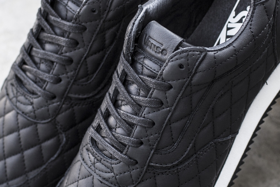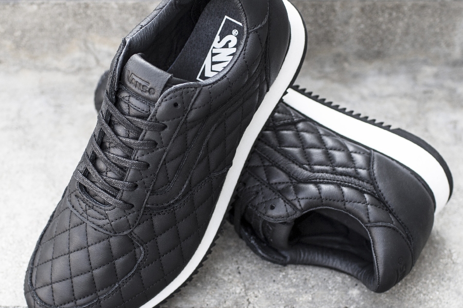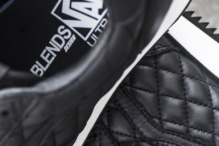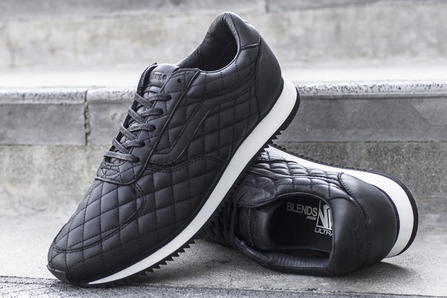 “Southern California-based boutique, Blends, teams up with Vans Vault for a special take on Vans’ Runner model. Blends dresses the model in a supple premium leather in an all-over quilted design with tonal accents of supple leather on the Jazz-Stripe, Heel, and Socklining as well as waxed flat cotton laces. Additional details include a Black rubber outsole accented with a white mid-sole. Vans utilizes its proprietary ULTRACUSH™ cushion technology for optimized support for every stride”.