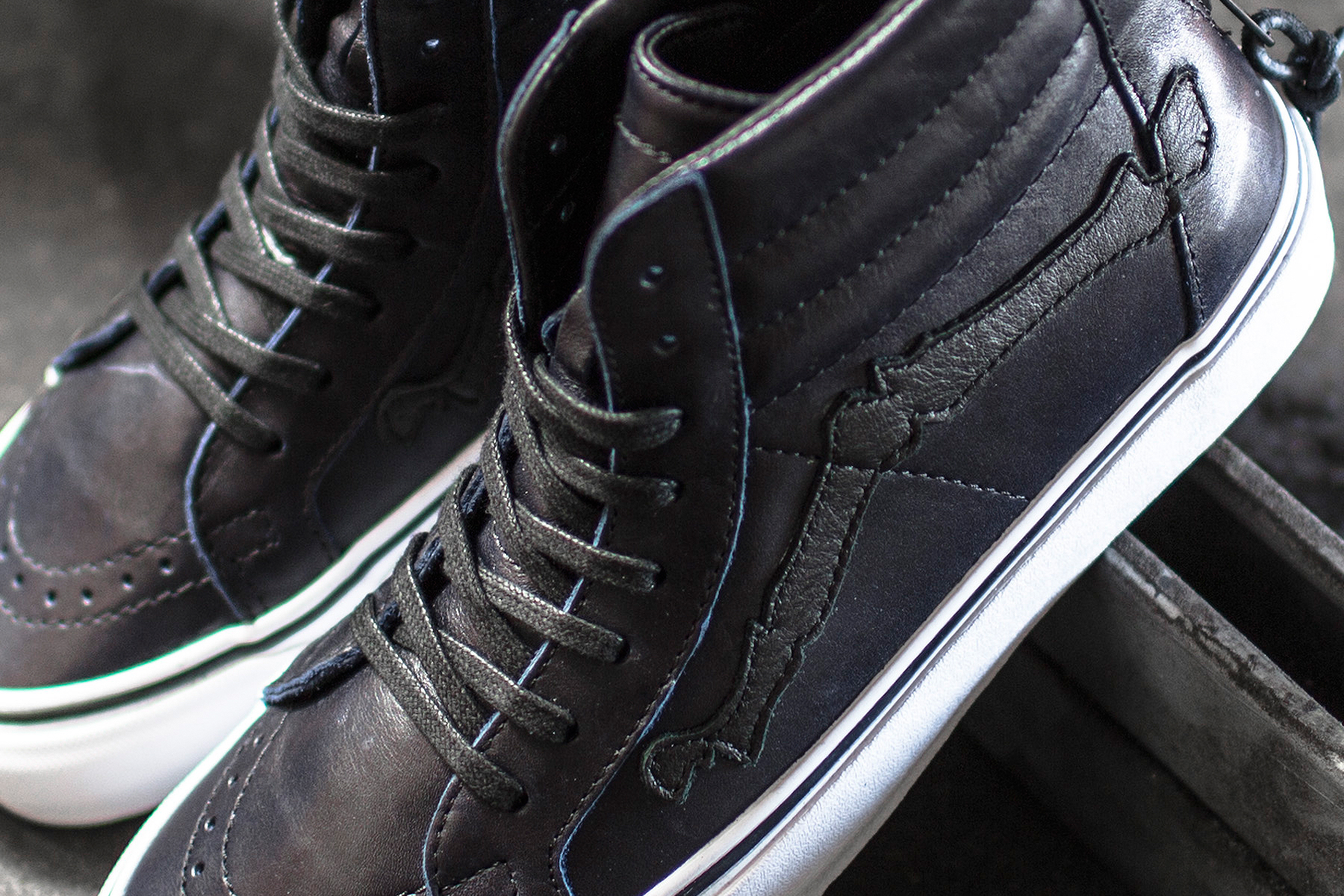 Southern California-based boutique Blends teams up with Vans Vault to recreate the classic Sk8-Hi model once again with their fifth installment of the duo’s signature ‘Bone Jazz-Stripe’ series. A close similarity to the original model that released in 2013, these feature a rich dark-blue “Peacoat” premium leather upper.