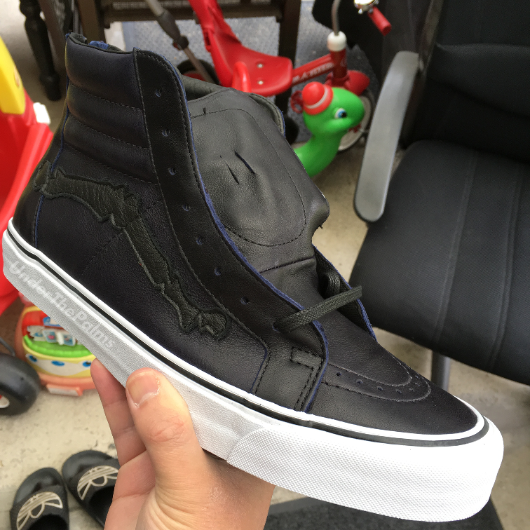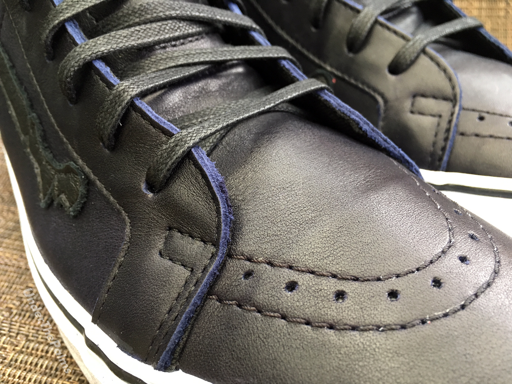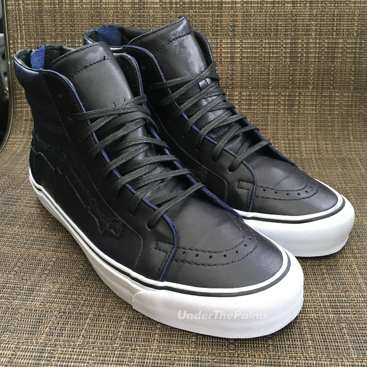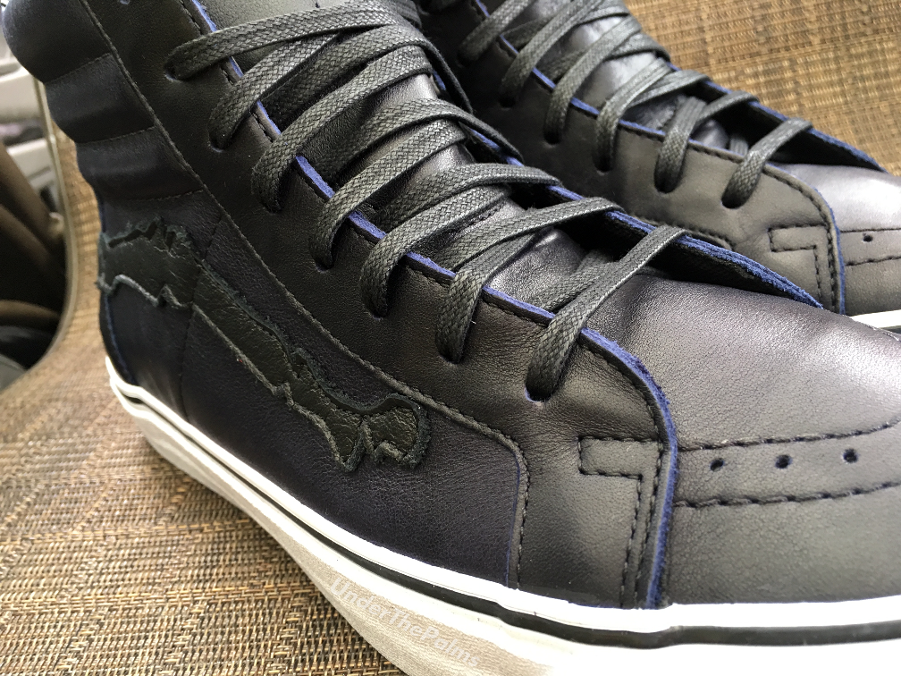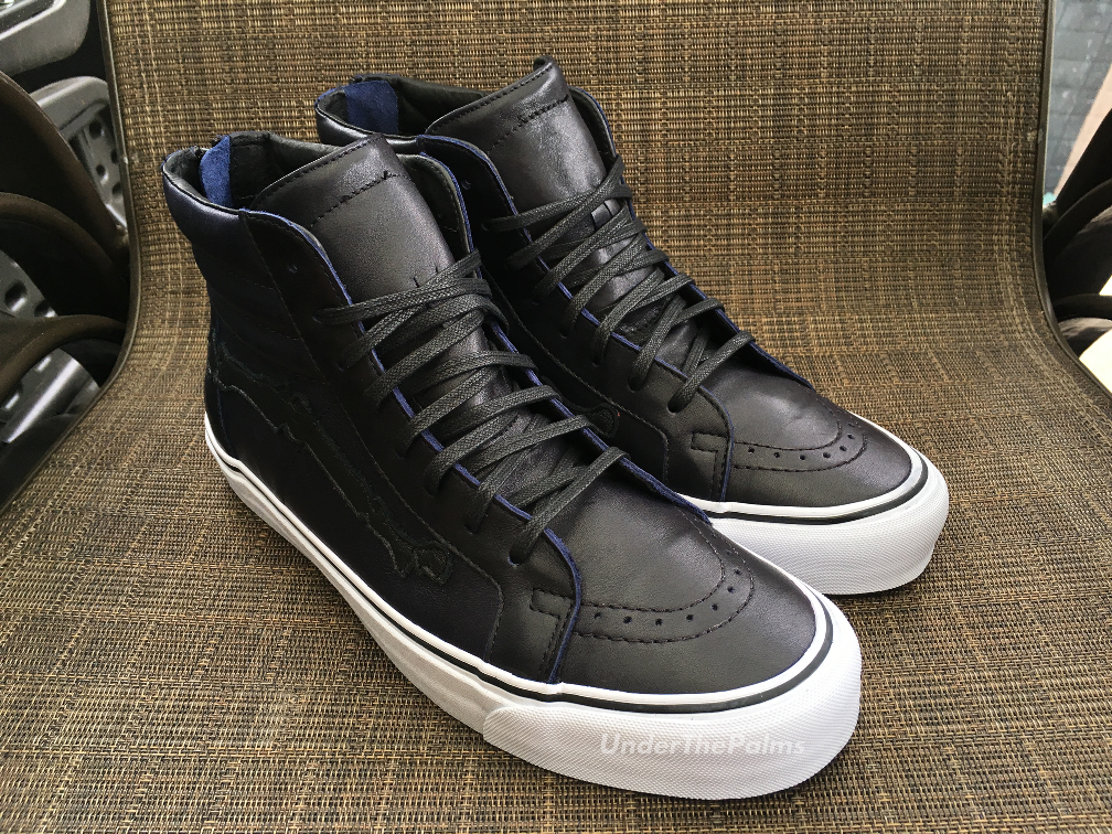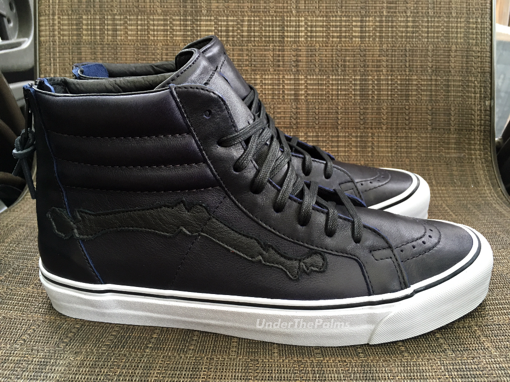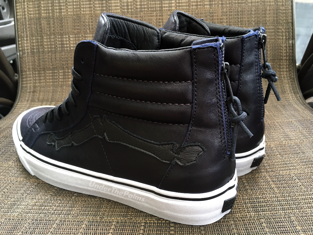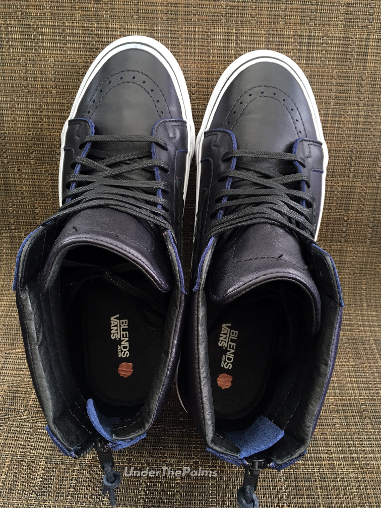Daaaamn Blends! Back at it again with the Bones Vans! This is the 5th release of the wildly popular “Bones Jazz Stripe” Vans to come out of the Blends camp, and this time we’ve got another banger. Always known for keeping things clean, simple, timeless, wearable, and trendless, this time Blends chose a Peacoat navy colorway, with a black jazz stripe and laces. The shoes have such a dark dye, that they appear to be almost black except for the natural suede on the edges of the premium leather panels, and on the back side of the inner zipper flap, where you can see a much more pronounced blue color. That slight contrast makes for a really cool design, and I could see this sort of treatment being a new trend in higher quality releases. The construction and make-up is still the same as all the other Blends Bones releases. Thin non-removable footbeds with minimal branding, and muted leather tongues, with no tags or branding. A white foxing, with black foxing stripe, and waffle sole complete the look. I hope some of you were fortunate enough to pick up a pair, as these are pretty much still the only Vans shoe that commands an over-night camp out. As you read this, I’m probably in line with the homies, waiting for Blends to open up. You might think I’m crazy for doing this stuff still, but this is one of the reasons why I do the Vans thing. The passion and the old school vibe sneaker culture is still there, and that still makes it fun for me. Thanks to the Blends family for always making it easy for me to get my hands on these. I’m forever grateful! -Guamstyles