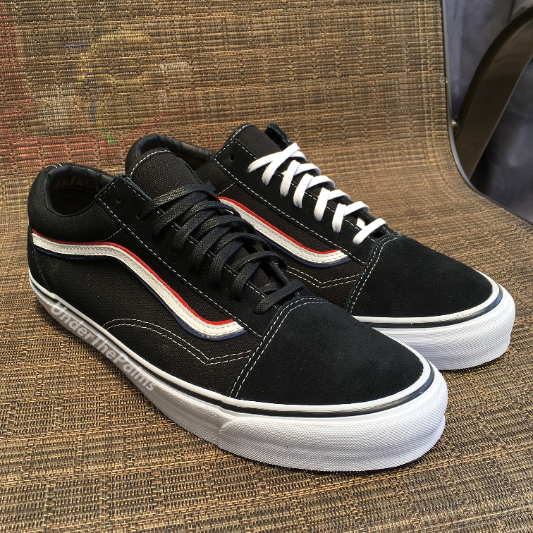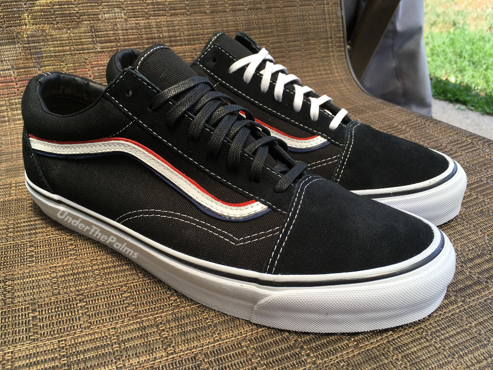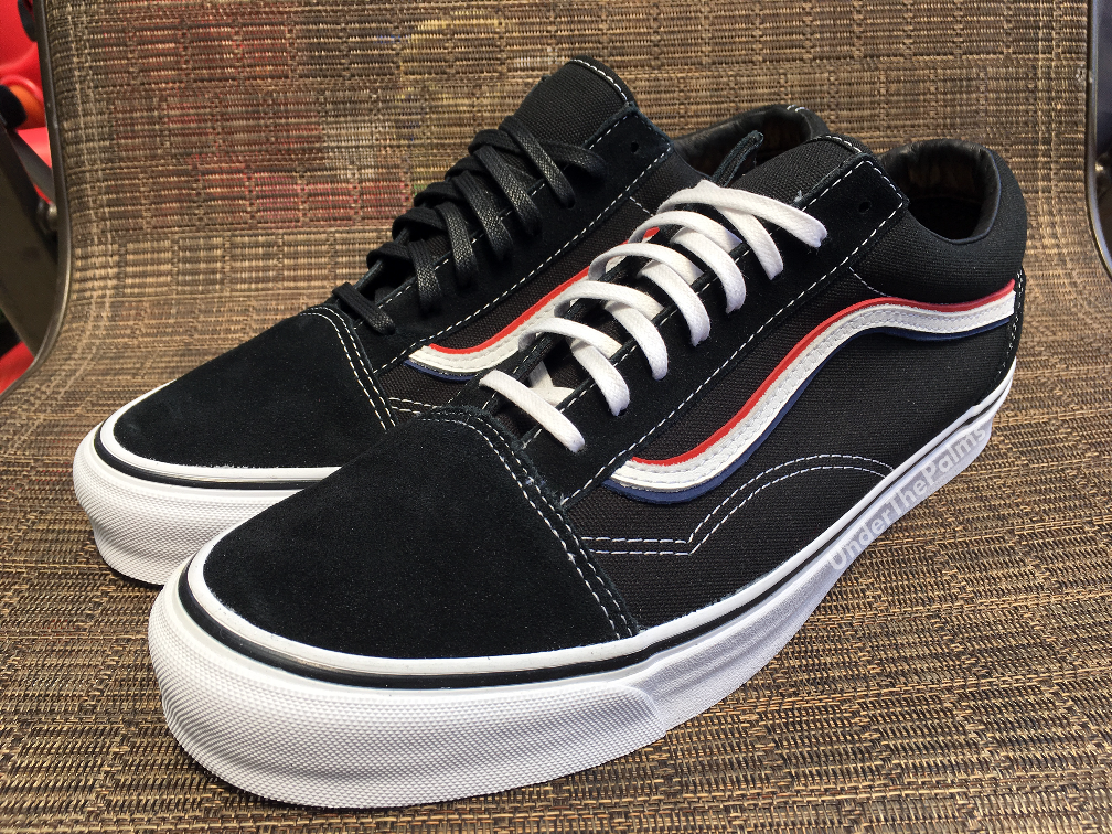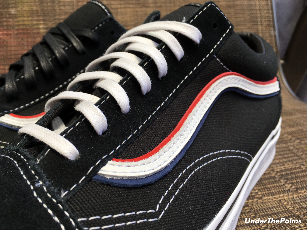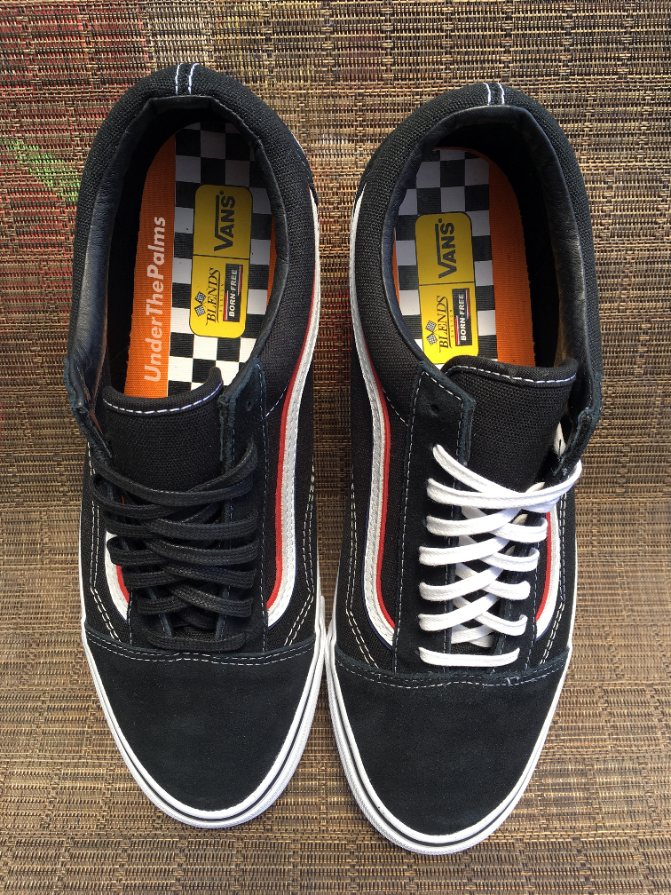 This past weekend was Born Free 8, Southern California’s premier motorcycle builder’s show, where Blends released their latest classic Vans shoe, in collaboration with Born Free. The OG Old Skool LX that they went with, is simple, and designed for the classic Vans enthusiast, which includes many folks in the vintage bike builder crowd. To most of these builders and fans, they could care less about rare and limited shoes, with fancy materials, colorways, but they do like classic, time-tested, designs like the classic black & white Old Skool. Blends and Born Free wanted to create something specific to this crowd, and the customization was kept to a bare minimum. Hardly noticeable, are the slim red and blue pieces of leather protruding from the top and bottom of the classic white jazz stripe, giving off a truly Americana aesthetic. The only other customized part of the shoe, would be the translucent sole, with checkerboard bottom, and custom branded footbeds, both which are hardly seen, but are there to let you know these aren’t your typical pair of Vans Old Skools. Materials are the same as you’d find on any pair of Vault OG shoe, including the pigskin lining. These shoes were a must for me and a few others, thus the reason about 9 of us got to Born Free 8 early in the morning, about 3 hours before the gates opened, just to secure pairs for ourselves and friends from all over the globe. It was a surprisingly easy release, but online pairs sold out instantly. I hope you enjoy a few personal unfiltered pics I took, and be on the lookout for any pairs that go up for sale!