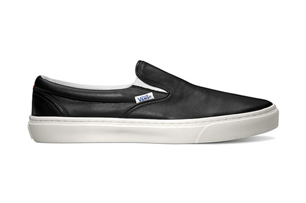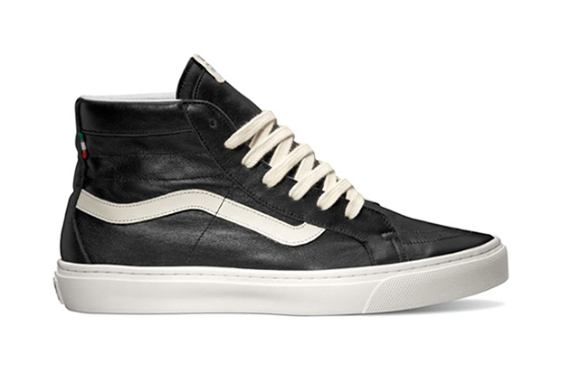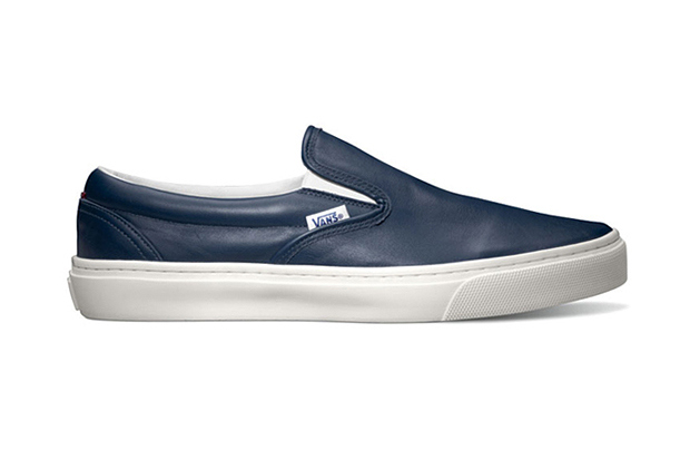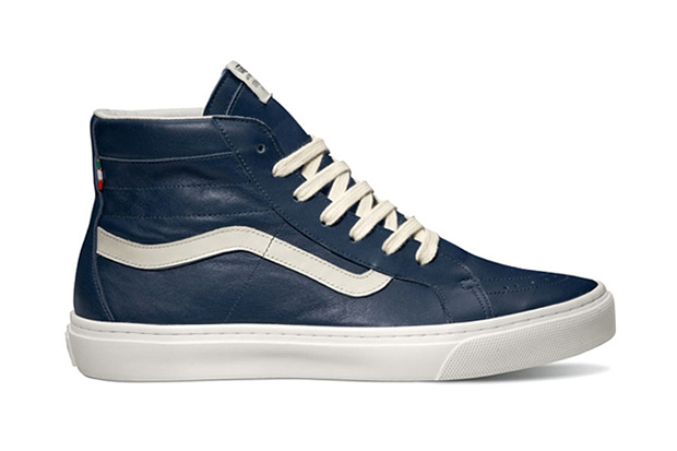 We now have some new information on the upcoming sneaker collaboration with Vault and Italian brand Diemme. They’ve already teamed up on a high-end boot a few months ago, and this time around they’re working with two familiar silhouettes. There’s some differences though, and so the collaborators gave the shoes their own name, respectively. First up is the Montebelluna Hi LX, the Sk8-Hi variation, and next is the Montebelluna Lo LX, which gets it’s good looks from the classic Slip-On. Both are hand-constructed in fine black or navy Italian leather, and sit on top of a cupsole that is stitched to the upper, and from 10 feet away you couldn’t tell that these aren’t equipped with a standard Vans vulc sole. Good thing, because with the $300 and $350 price mark, you want these things to last longer than your average pair of Vans! Oh, you didn’t know that was the price? Hehe, well what do you expect from a fine hand-made Italian piece of craftsmanship? Now, the question is…will you pay full retail for these in April, when they start showing up in assuming limited numbers?