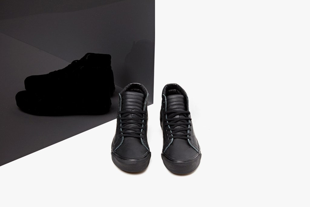 “DQM will be releasing its Spring 16 footwear collection in collaboration with Vans this Friday, February 26th. The collection inlcudes an OG SK8-Hi LX and an OG Style 36 LX, both produced in all black and all white premium leather color ways. Made exclusively for DQM, the shoes are inspired by a study in minimalism, and in contrasts and transitions: two parts of one, light and dark, black and white, and the gray areas.