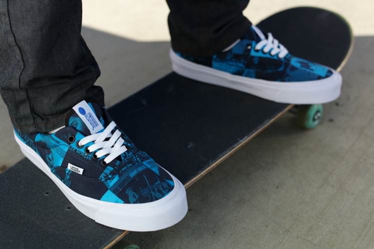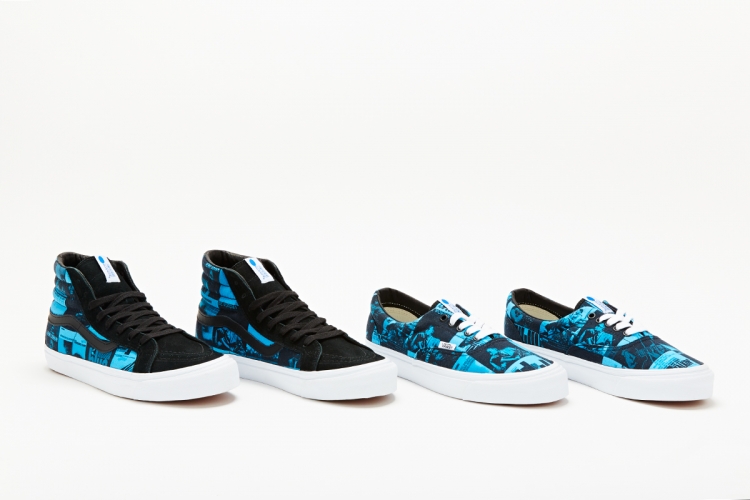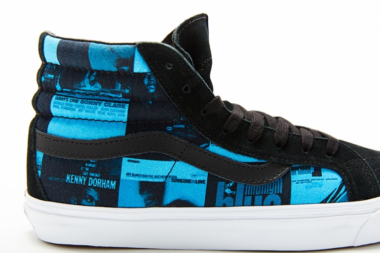 “DQM has collaborated with Vans this Summer to produce a very special project with the iconic Blue Note Records. Following last month’s initial release, the second color way in the footwear project, ‘The Blues’, will release this Friday, June 5th. Produced exclusively for DQM; ‘The Blues’ pack consists of an OG Era LX and an OG Sk8-Hi LX style each constructed in 6oz canvas printed with a blue tone collage featuring authentic cover art from Blue Note’s epic catalog. The Sk8-Hi LX’s have black suede detailing and the Era LX’s are finished with white laces through black metal eyelets; both styles have a true white vulc midsole, classic waffle sole and feature DQM labeling at the heel and insole.