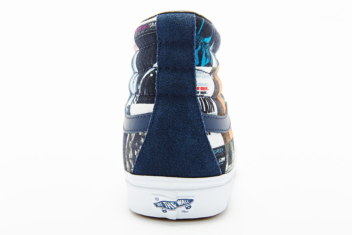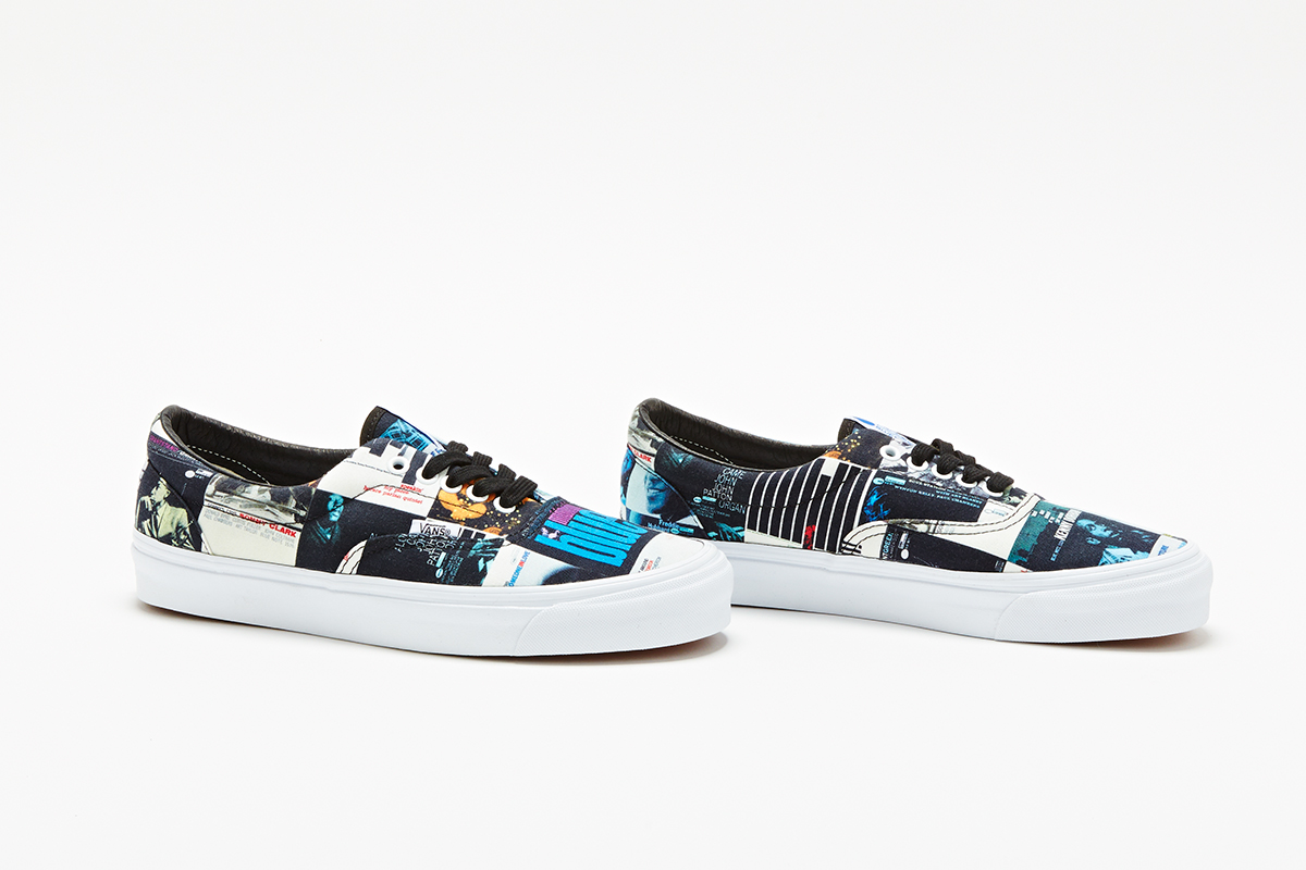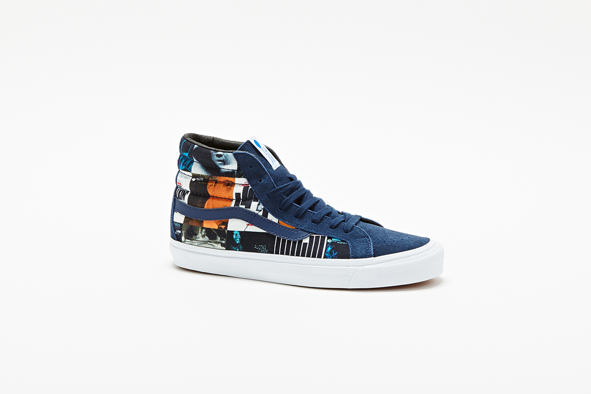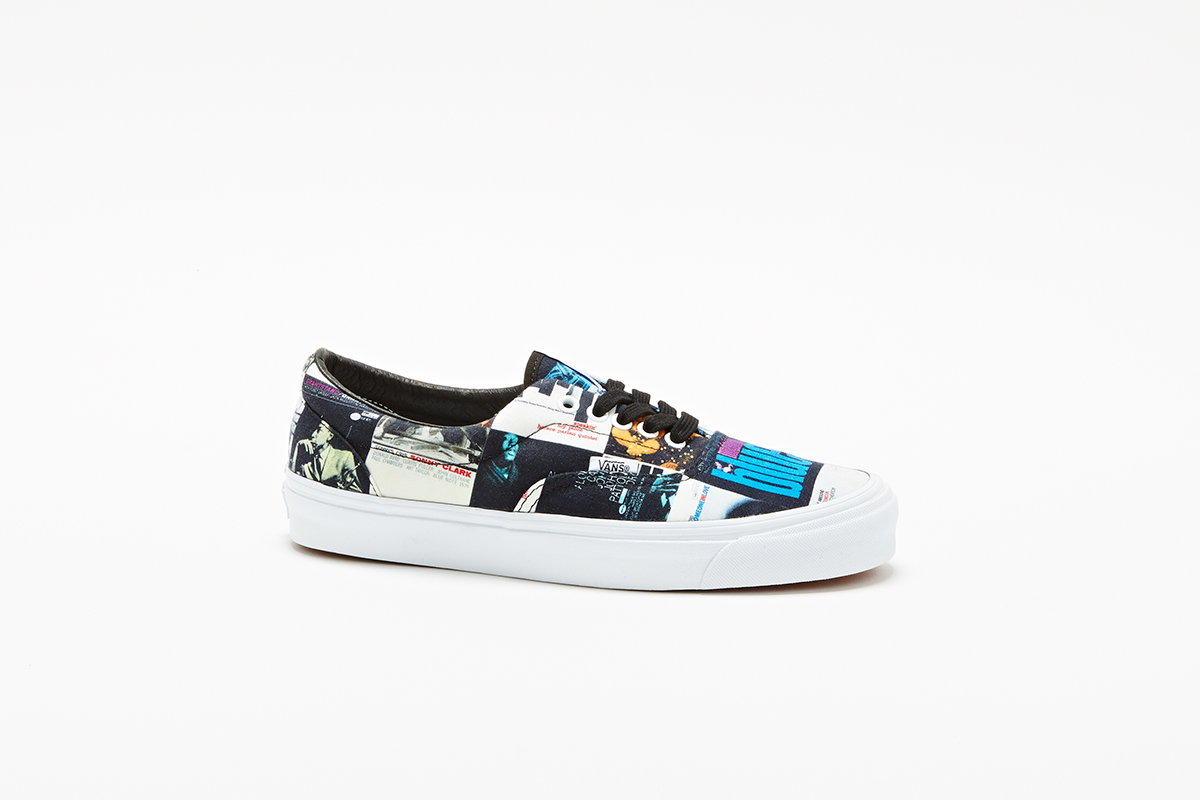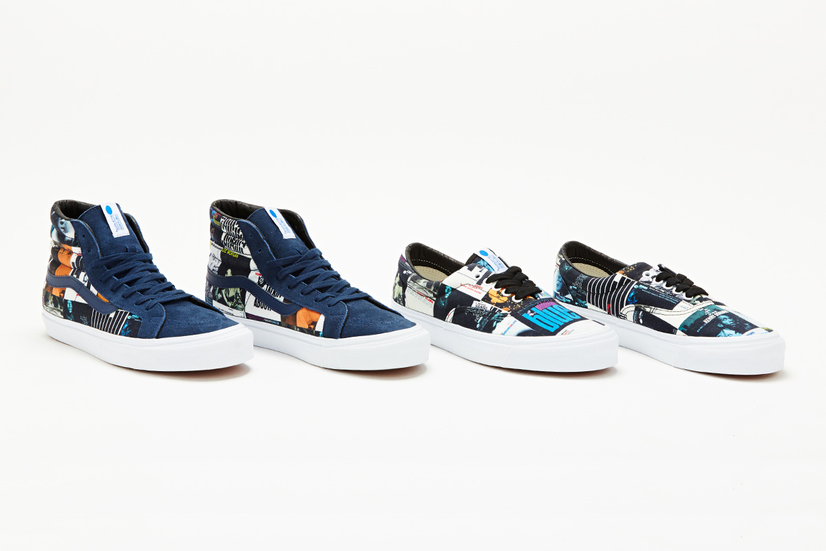 The shoes are constructed in 6oz canvas printed with a full color collage featuring authentic cover art from Blue Note’s epic catalog. The Sk8-Hi LX’s have blue suede detailing and the Era LX’s are finished with black laces through white metal eyelets; both styles have a true white vulc midsole, classic waffle sole and feature DQM labeling at the heel and insole.