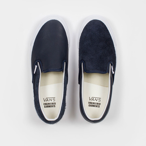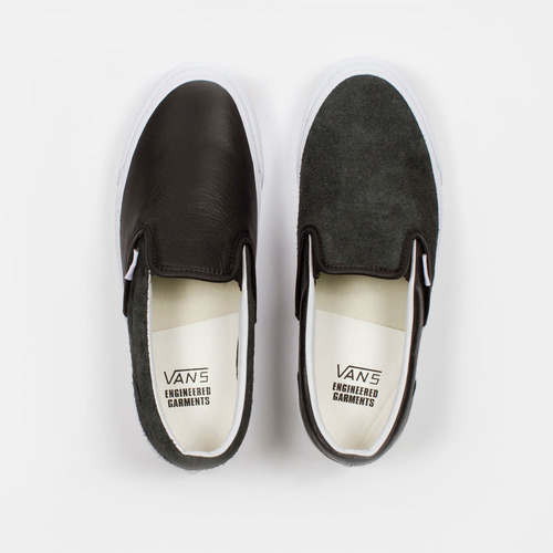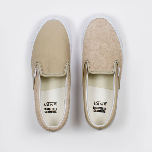 On Tuesday, September 10th we will be releasing the Vault by Vans for Engineered Garments capsule collection. The shoes will be available in the OG Authentic LX in Sunforger Canvas and Olive Reversed Sateen and the OG Classic Slip-On LX in Mismatch Black Leather, Navy Leather, and Tan Leather.