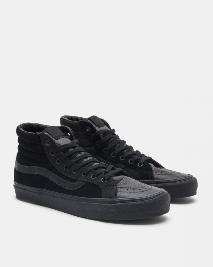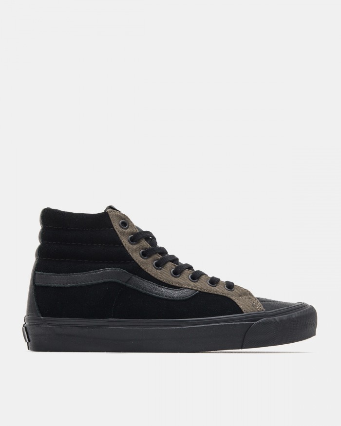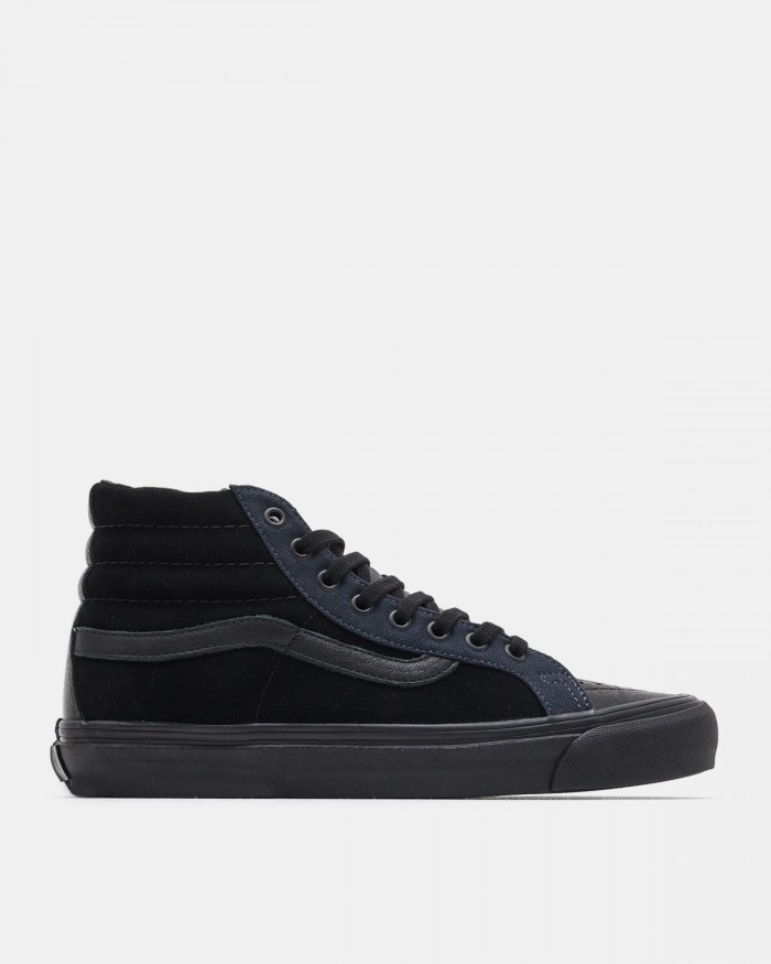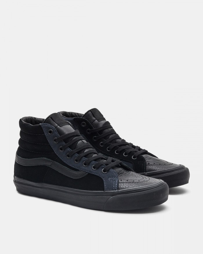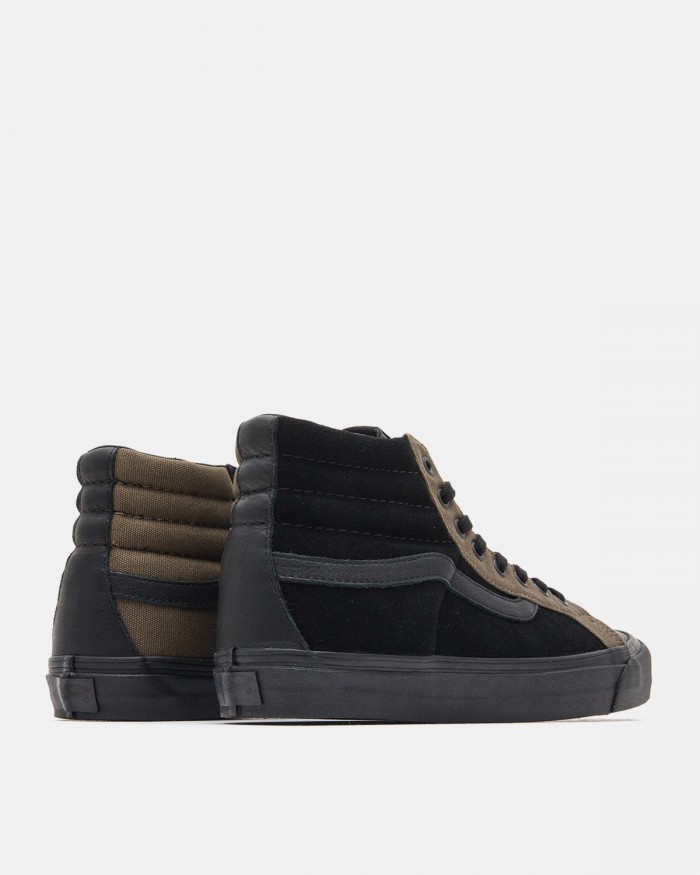 Engineered Garments has teamed up with Vans Vault once again, to release this 3-pack of OG Sk8-Hi LX’s, this time going in a different direction than their prior “mis-matched” styles that they’re known for. For this pack, all 3 Sk8-Hi’s are constructed in the same black premium leather and sude, but the lateral (inside) panels of each shoe are constructed in one of 3 canvas colors: olive, black, or navy. That same colored canvas can be seen on the medial eye-lace row. If you’re confused, just look at the pictures, but you’ll see what I mean! The overall aesthetic is mature, and subtle, with a little bit of mismatched fun. At least each shoe is a mirror reflection of each other this time around, which some might prefer. These are now available exclusively from UBIQ for $110 each.