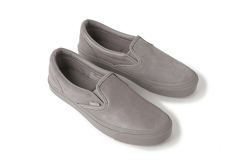 Engineered Garments is back with another iteration of their “mismatched” Vans Vault series, and this time they’ve introduced a Sk8-Hi Reissue into the lineup. They’re also back at it again with the Slip-On LX, this time going for a tonal color palette throughout the entire shoe and foxing. The pack is being offered up in the familiar reverse suede/leather combo, in a black, white, or moon rock colorway. Look for these to be available soon at Nepenthes NY.