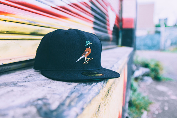 We’ve been wearing fitted caps pretty often again, and felt that it was time to launch a “Mynah” graphic one to accompany the “Mynah” Vans Vault shoes. Available in two colors: Yankees blue or lava tube black.”