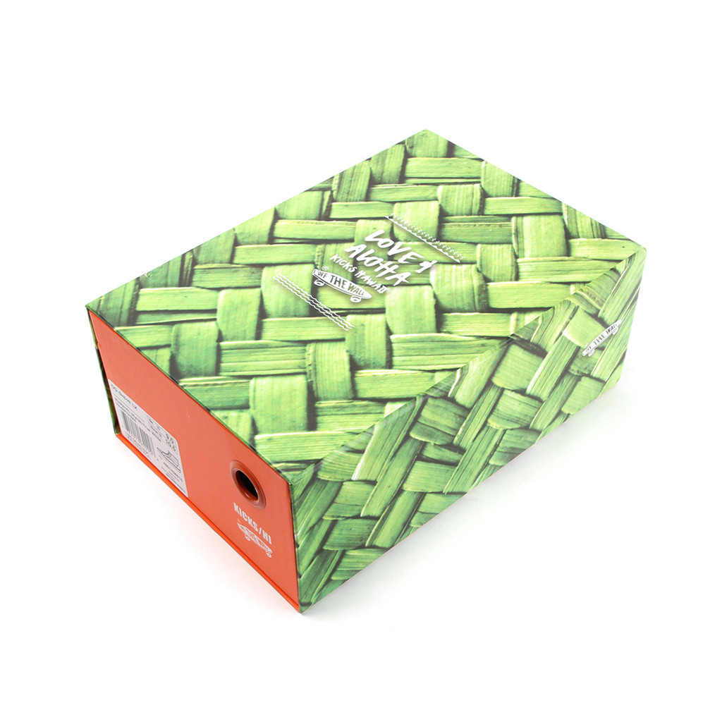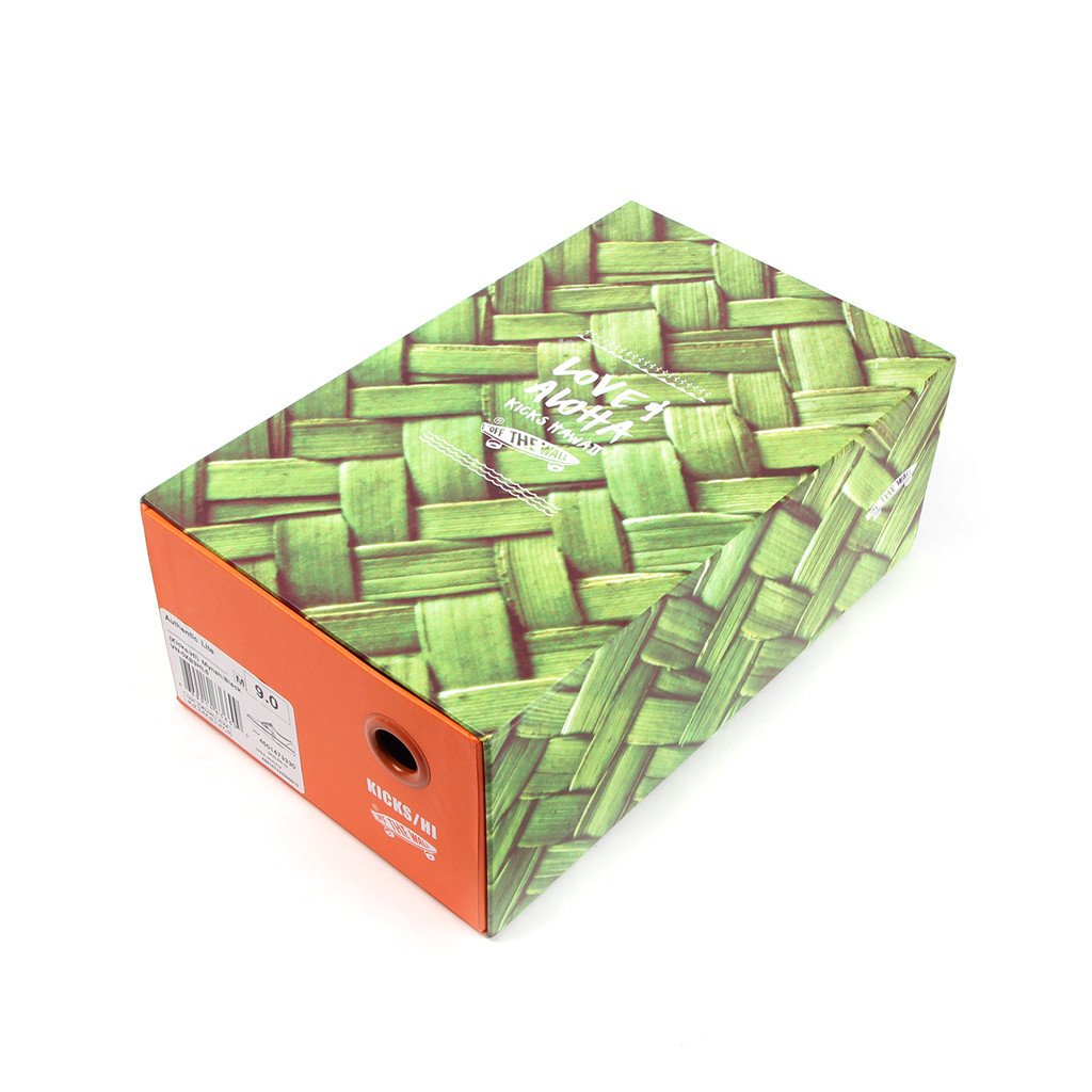 We chose the woven lauhala box imagery because woven lauhala mats, hats, and baskets are notable aspects of Hawaii’s handcrafted artistry. It was next to impossible to create actual, woven lauhala boxes for all these Vans, but the idea is to further build upon the “old school to new school” theme: old school craftsmanship displayed on a new school Vans pull-box. Ultimately, we wanted to create a shoebox that would stand out on any shelf, in any stack, etc. and be equally recognized alongside the shoes they house. We envisioned people coveting the shoebox as much as want the shoes.