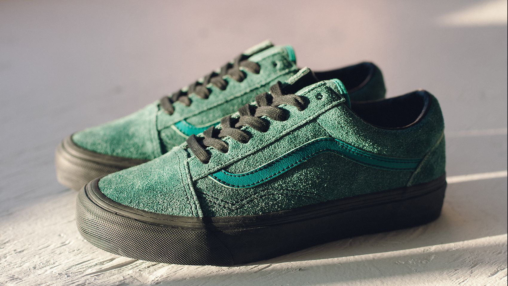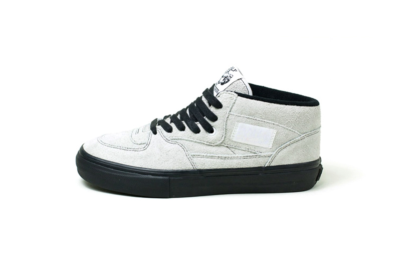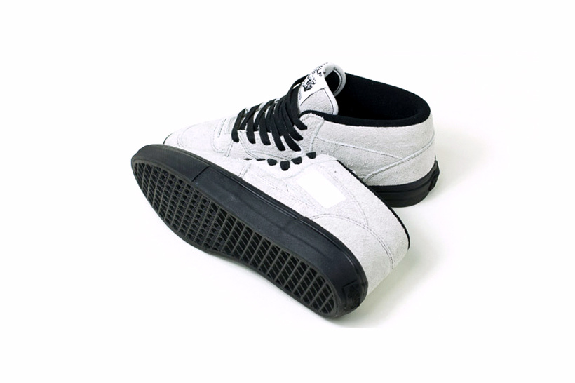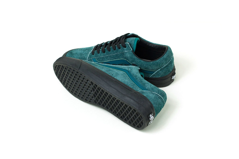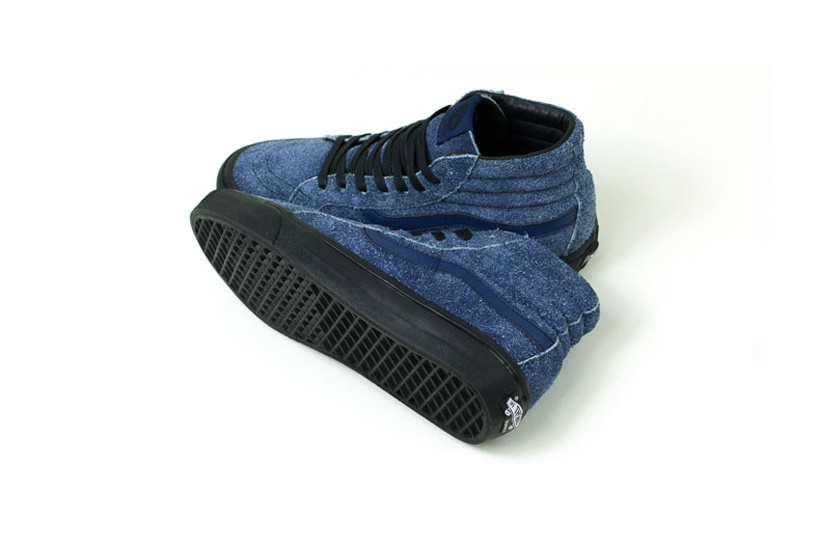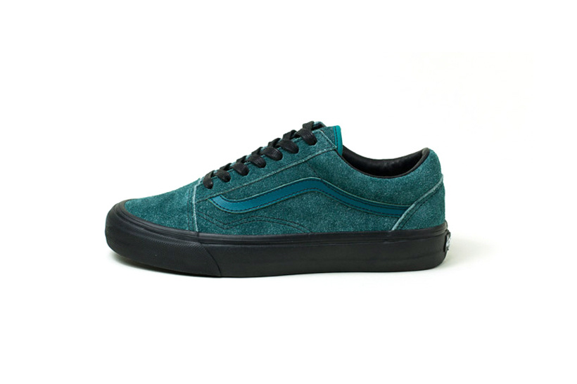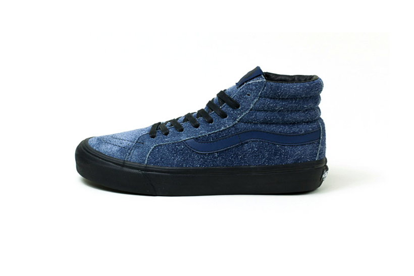 Vault by Vans and Maiden Noir have teamed up to create a few classic Vans silhouettes, in a nappy suede mock up. 3 models, featuring 3 colorways, with contrasting black laces, while each sits on a black vulcanized sole. The first up is the OG Sk8-Hi LX in blue. The next is an OG Half Cab LX in off-white. The third is the OG Old Skool LX in a teal colorway. Very fashion forward. Very edgy. Very limited. Likelihood had a release party for the collection last night, but don’t worry! Here’s where you can get them tomorrow: