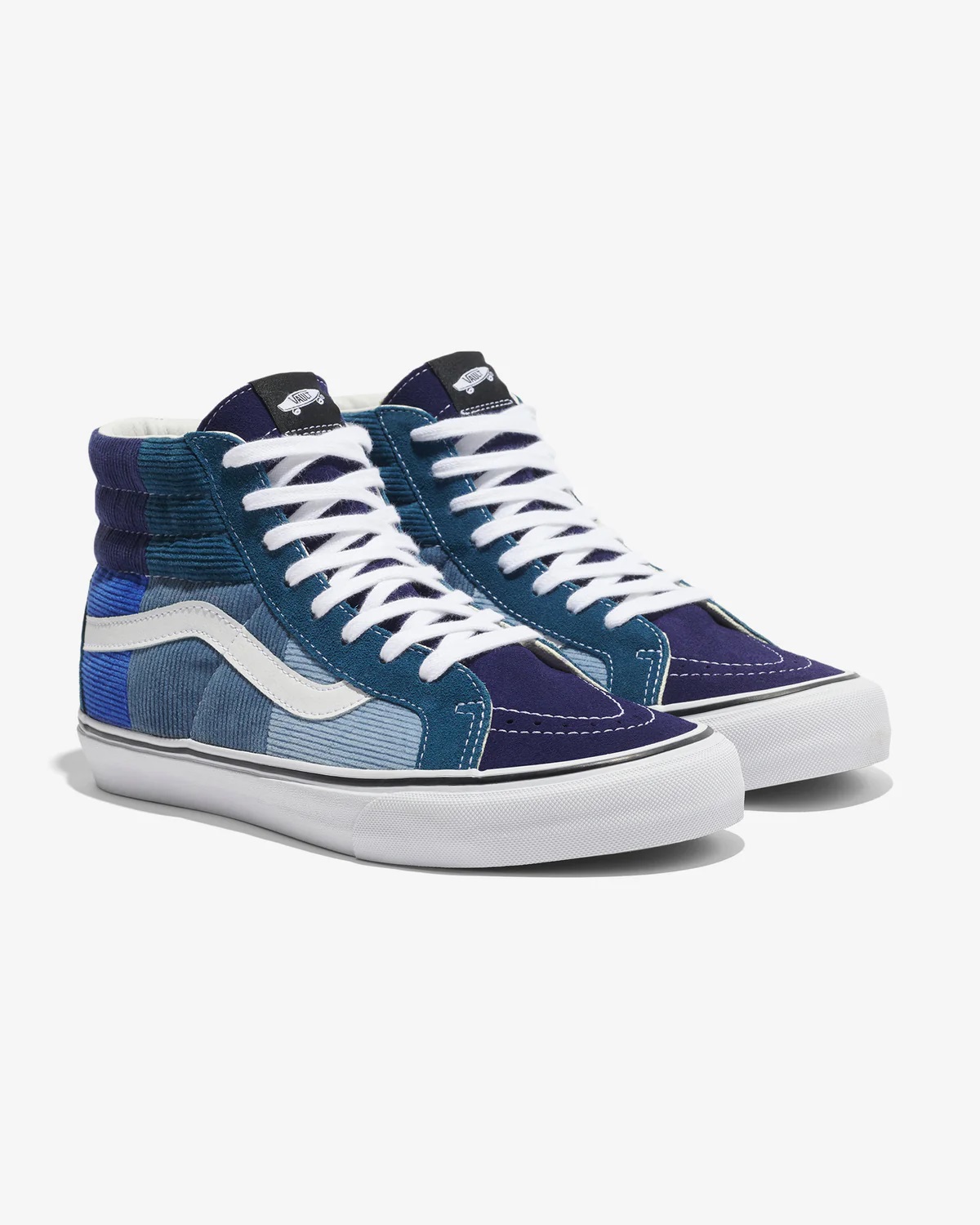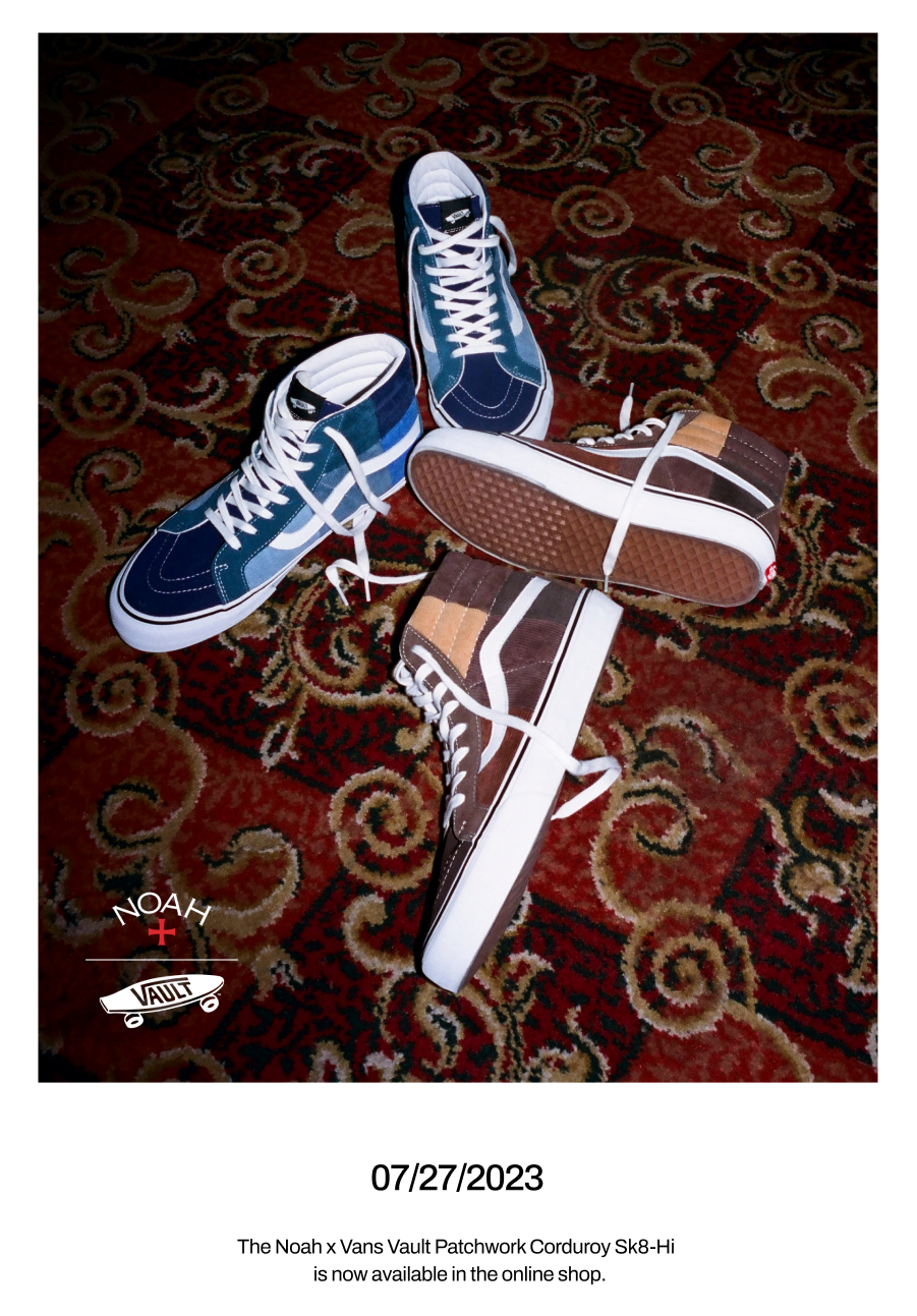 Vans Vault and NOAH are back with a new set of Vans Vaults for us. This time, choosing a Sk8-Hi, and constructing it in suede and 100% cotton corduroy, in a patchwork sort of fashion. Available in two colorways, Brown or Blue. These are Vaults, but the heel plate is throwing us off, because at first glance you think it’s just a GR silo, but then you see that it’s actually an embossed version, but not the one we currently see on all VLT Vaults. Just another reason to cop these limited Sk8-Hi’s that are just way too clean to pass up.