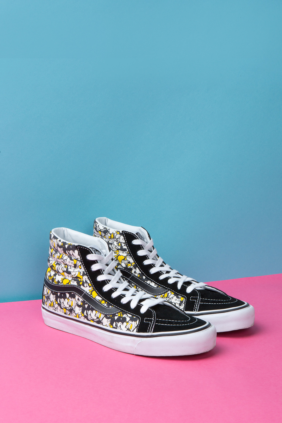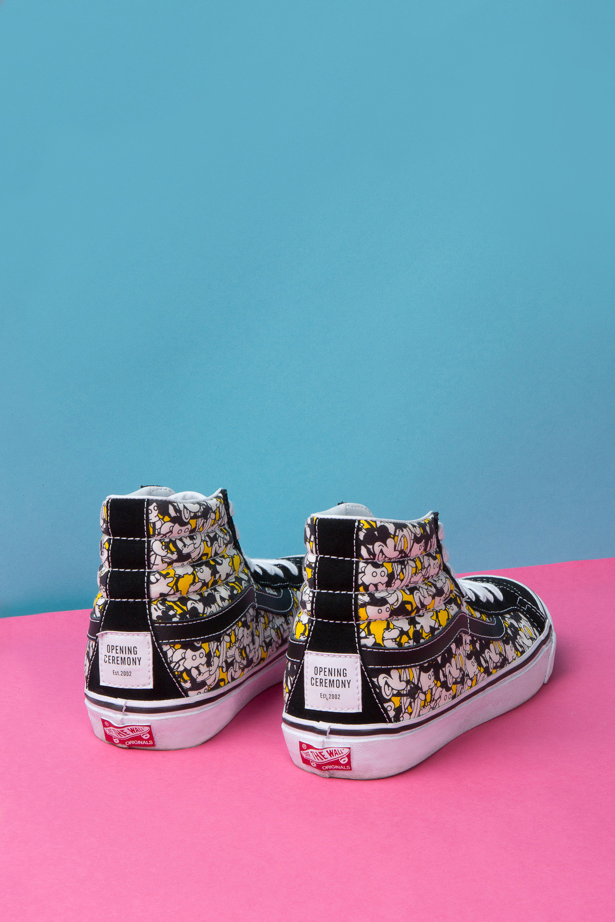Vault by Vans has teamed up with Opening Ceremony, and Disney, to create this Mickey Mouse shoe collection you see here. Choosing the classic models, OG Sk8-Hi LX, OG Authentic LX, and OG Slip-On LX, the first two feature an all-over print of Steamboat Willie, the very first Mickey Mouse character. The Sk8-Hi has a yellow background on the canvas, with black suede uppers. The Authentic has a red background on an all-over canvas print. The Slip-On features a film strip all-over print. Each pair is available for pre-order on Opening Ceremony’s webstore. I wish all of you luck in pre-ordering, as Opening Ceremony has been known to mess that up on numerous occasions, with some of us members here at Under The Palms.