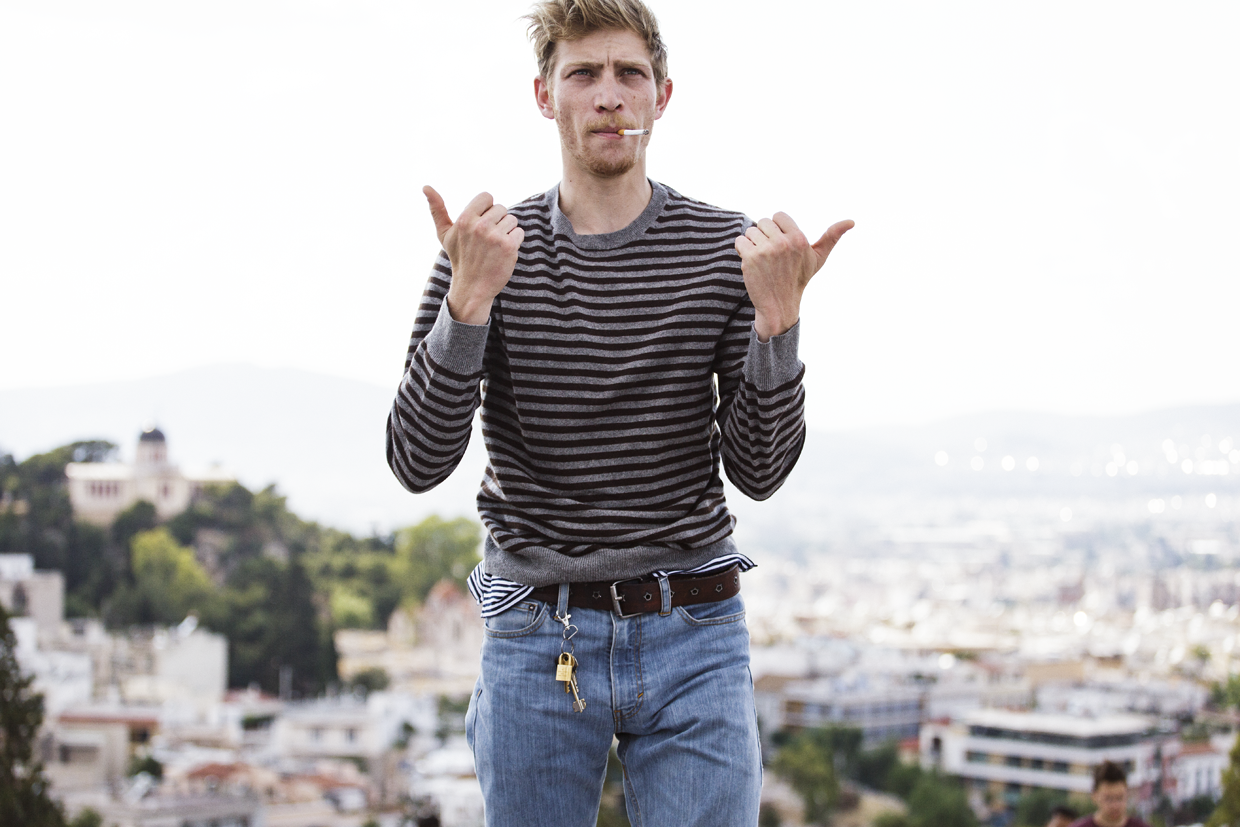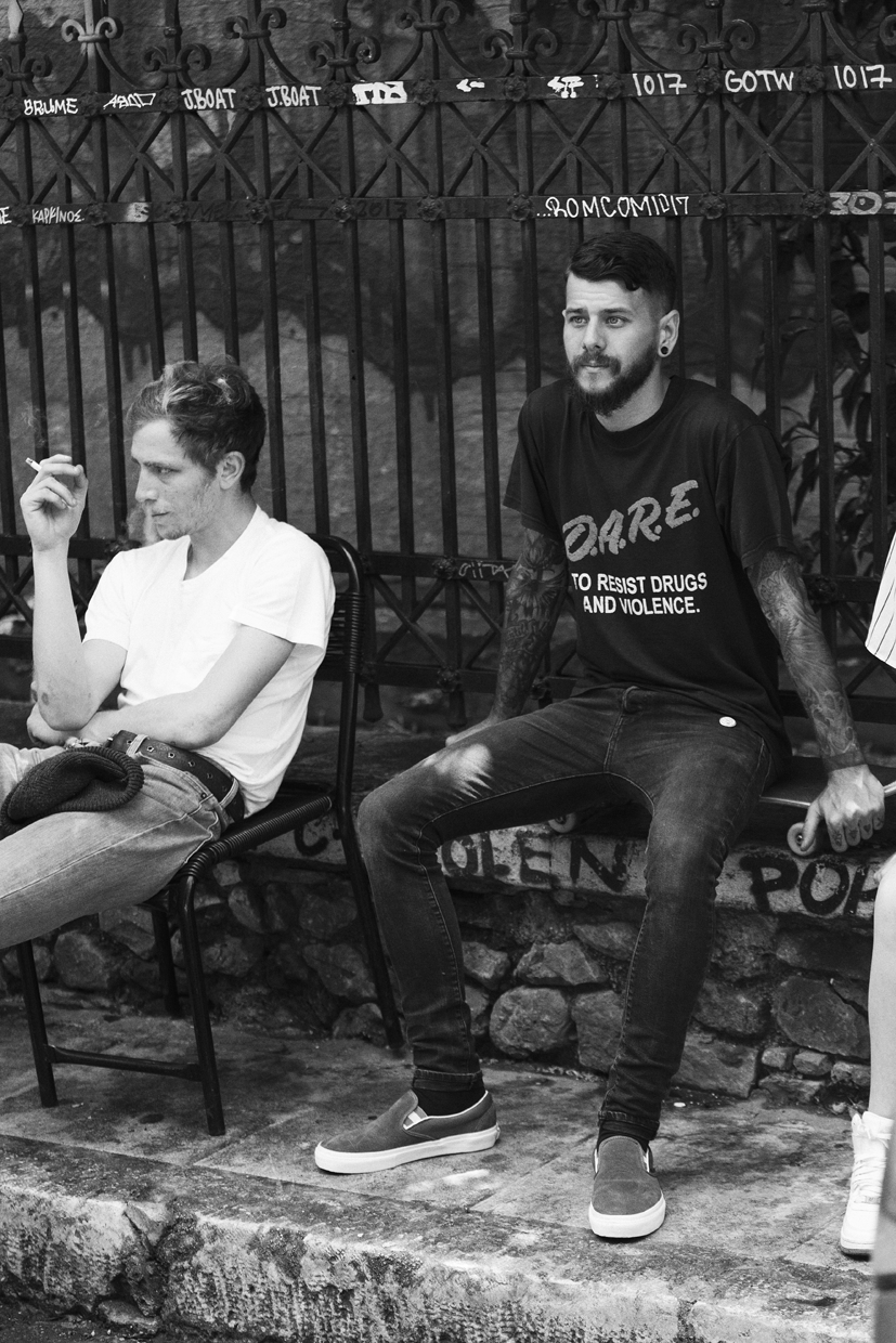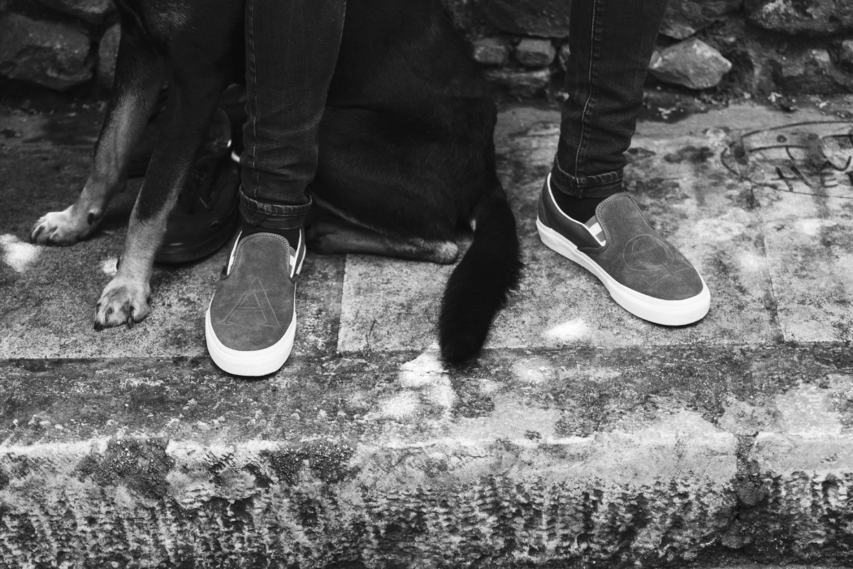 In keeping with the goal of uniting their Greek and Quebecois roots, Vans OTH called upon photographer Vassilis Karidis, of Dapper Dan, to shoot a lookbook that embodies the spirit of today’s youth in Athens. The flag pictured was created specifically for the AΩ Project and merges the Greek flag with the Quebec flag to create something that truly represents OFF THE HOOK’s heritage. The shoot was styled by Nicholas Georgiou, also of Dapper Dan. As part of the AΩ Project, Vans OTH teamed up with Quebec designer Isaac Larose, of Larose Paris, to bring a new and unique vision to a classic silhouette.