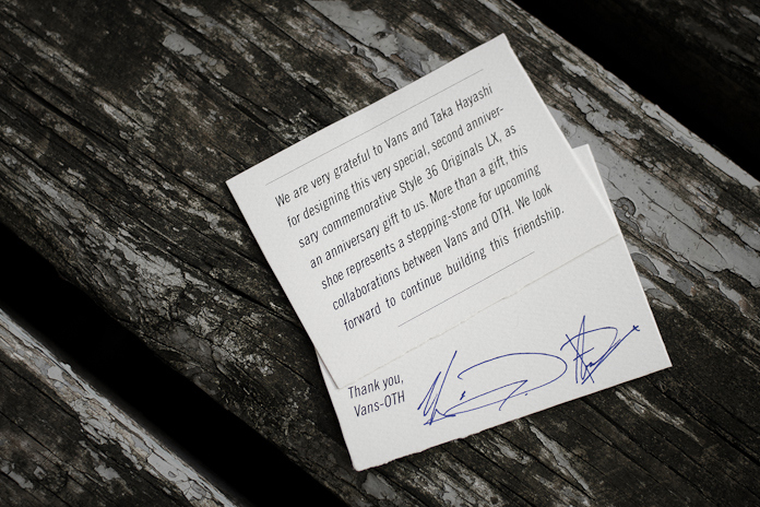“The Vans – OTH Boutique in Montreal recently celebrated its 2nd anniversary, attracting the beautiful people of the city’s social scene to l’Astral for a night of music, dancing and general celebration. With OTH Boutique being a driving force in Montreal’s streetwear scene, the event drew some influential figures. To commemorate the event, iconic designer Taka Hayashi teamed up with Vans to offer a fresh version of the Style 36 Originals LX silhouette. This appropriately light version is executed with an off-white canvas upper, with hints of tonal suede around the toecap and heel counter. Limited to 96 pairs, the sneaker is delivered in a hand-numbered custom canvas wrapping, a fitting package for such a clean piece.”