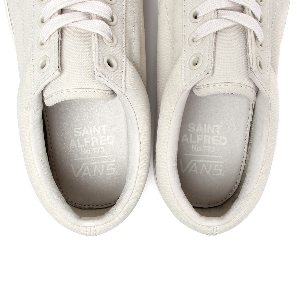 Saint Alfred has finally released official pics of their upcoming Old Skool LX’s, and they’ve also revealed that the pack will release this Saturday, the 9th. Some of the official specs have been listed on their webstore where the links are up, but just no inventory yet. Both shoes feature a durable canvas upper with resin coating for water repellant properties, as well as a gusseted tongue to help stop water from getting to your socks. The shoes feature a premium pigskin leather lining, padded collar, and Ortholite footbeds. The outer features include a stitched jazz stripe, lace eyelets, and a very unique morse code print on the sidewalls that spell out “STA773”. The shoes come packaged in a custom box with dustbag, numbered _ / 100, with a clever piece of packaging tape so you’ll know if someone tampered with them.