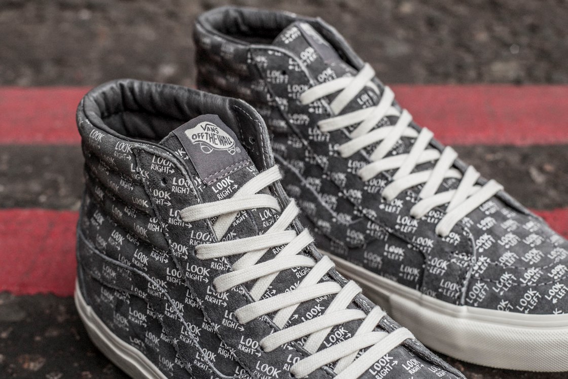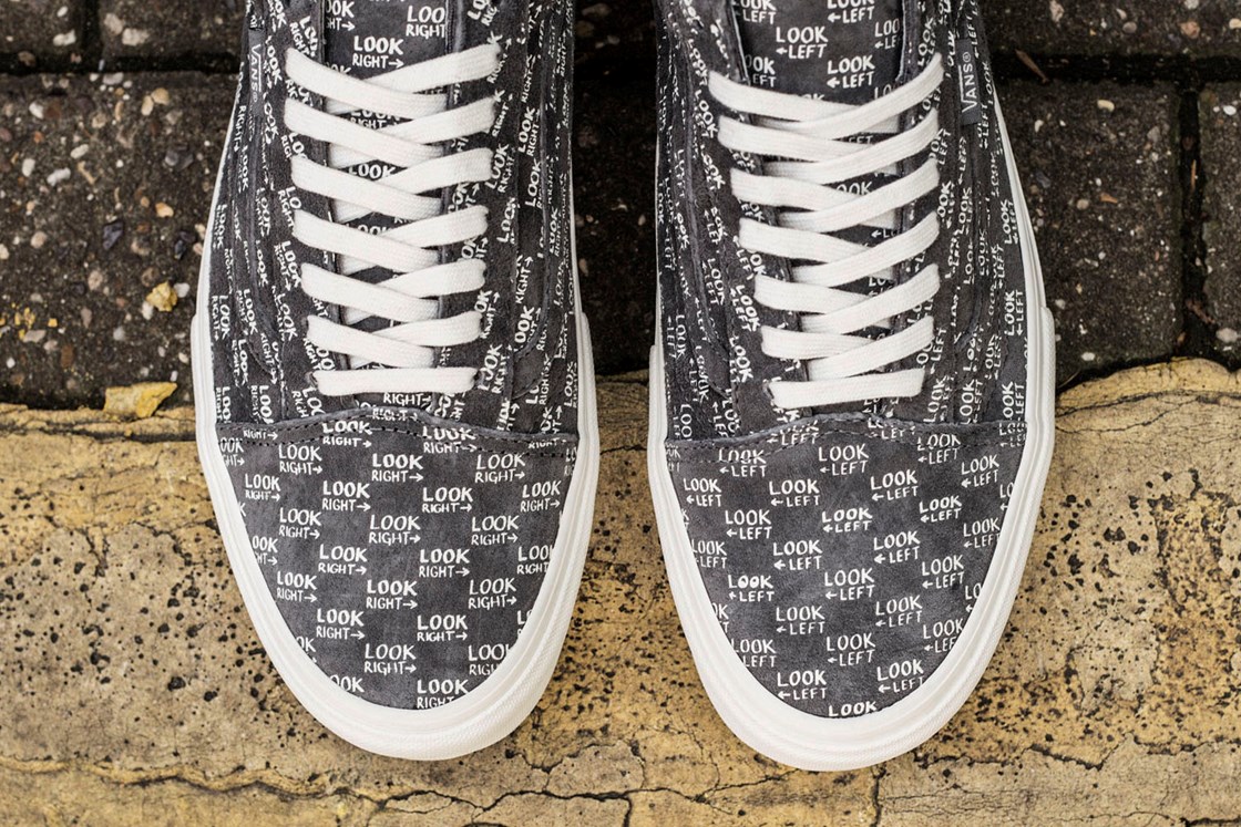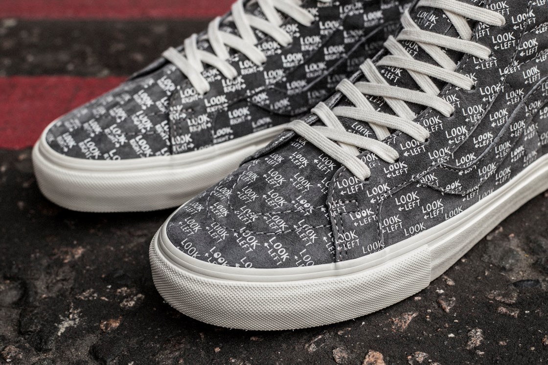 Both the Sneakersnstuff x Vans Old Skool LX ”London” and the Sneakersnstuff x Vans SK8-Hi LX ”London” are made in highland suede with a screen printed ”Look Left, Look Right” checkerboard pattern. Scotchgard™ Protector by 3M will keep you dry while walking the streets of London and both shoes comes with three sets of laces. The yellow and red accent colors comes from the single/double yellow lines and red routes on the roads in London.
