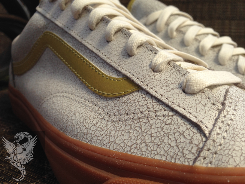 Sole Classics dropped their latest Vans Vault collaboration “The Prequel” this past weekend, also known as the “SC Flyer”, an OG Style 36 LX paying tribute to the beginning of flight. This shoe has a good amount of unique materials, and the color combination is something to be admired, designed by our friend James aka @mrkingjd, and pairs nicely with almost anything. The gold 3M is something you don’t see used too often, and when used sparingly it adds a perfect accent, especially when the primary colors of the shoe are an off-white and gum brown combination. The cracked leather is a nice texture that we haven’t seen used in a long time and the people are receiving it pretty well! We’ve taken a few close up realistic photos, as we always try to do with our reviews, and we hope it helps you decide if you need to have these. To us, it was a no brainer. It’s the year of the OG Style 36 LX! Overall the shoe came out extremely nice, and Sole Classics still has some sizes left up on their webstore, so cop them while you still can.